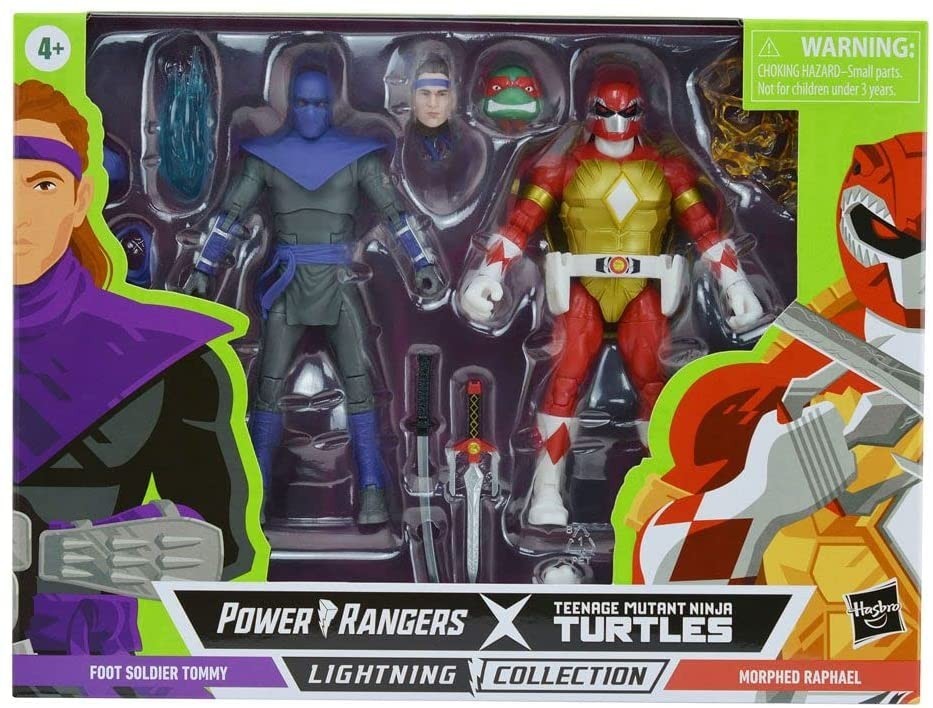 Figuras Power Rangers X Teenage Mutant Ninja Turtles Foot Soldier Tommy & Morphed Raphael Red Articuladas 15 cms