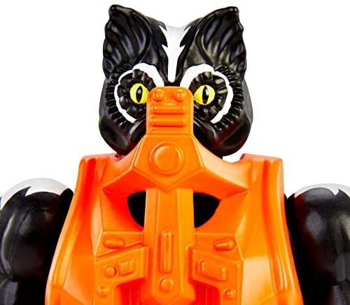 Mattel y Netflix se juntaron para crear la serie "Masters of the Universe: Revelation", que nos hizo volver a la guerra por el planeta Eternia con un trabajo de rediseño espectacular, manteniendo la esencia de los personajes, pero actualizándolos para una audiencia moderna. El llamado 'Malvado Maestro de los Olores' Stinkor es básicamente una mofeta humanoide que es capaz de liberar un tóxico olor para arrasar con sus enemigos. En la atractiva caja temática basada en la serie de la plataforma de streaming, además de la figura articulada, vienen dos manos intercambiables, su escudo y una cabeza intercambiable. Stinkor está hecho de PVC y mide unos 17 cms aproximadamente.