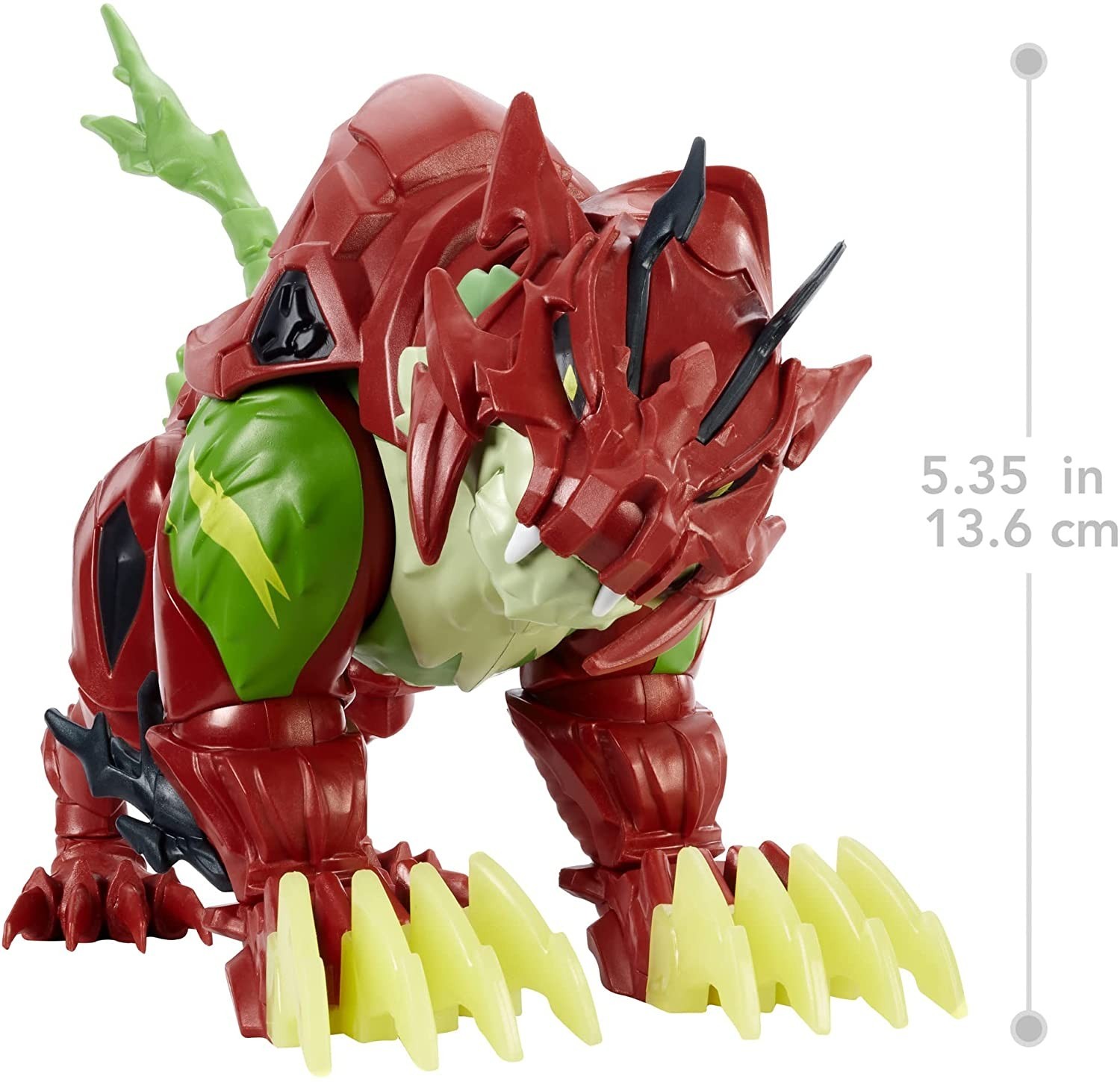 Atractiva figura de acción del Battle Cat, la fiel y valiente montura de He-Man, el héroe y campeón del planeta Eternia. El Battle Cat que te encontrarás en este expositor/blíster de cartón es el que está basado en la serie de animación de Netflix "He-Man and the Masters of the Universe". El Battle Cat de 14 cms tiene todos los detalles de su pelaje verde y armadura roja moldeados a la perfección. Pertenece a la colección de Mattel Power Attack de figuras que tienen un mecanismo para moverse y atacar; el Battle Cat lo hace con sus fuertes zarpas de las patas delanteras. Un aliado que querrás tener en tu bando.
