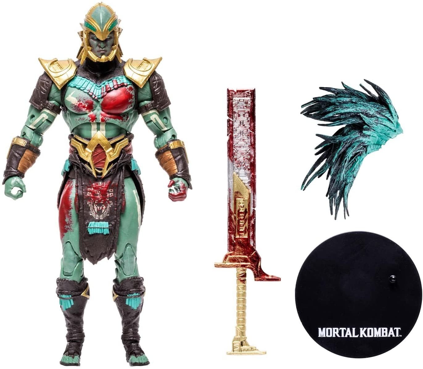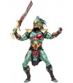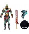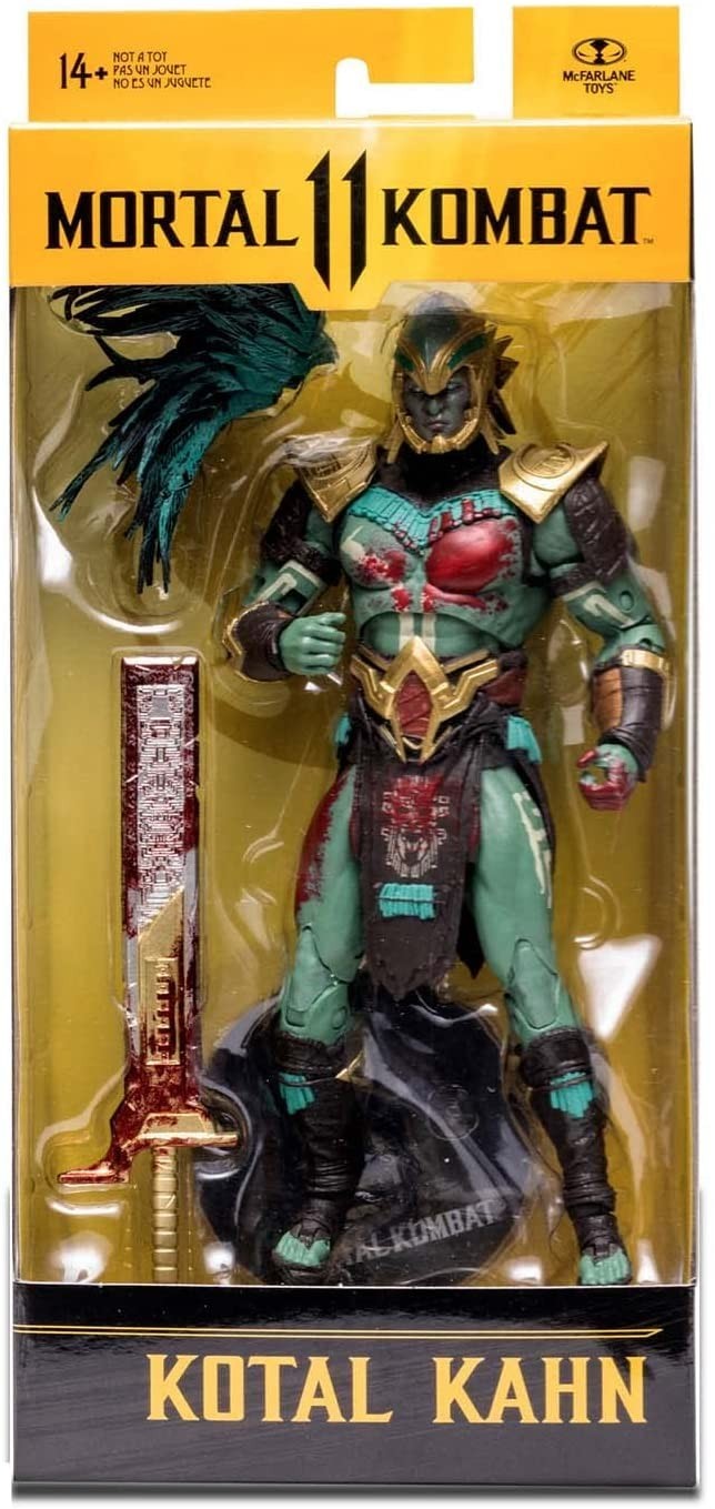 El guerrero Kotal Kahn, de la raza de guerreros Osh Tekk, tuvo su presentación en Mortal Kombat X. Lo que te traemos hoy aquí es la figura de acción articulada de la versión del personaje que salía en el videojuego Mortal Kombat 11. Este Kotal Kahn tiene un trabajo de escultura y pintura espectacular que muestra al personaje con sus colores característicos verdes y dorados. Está hecho de PVC, mide 18 cms y viene acompañado de una peana para exposición, su corona de plumas y un espadón tan ensangrentado como el propio guerrero. Completa tu alineación de luchadores de Mortal Kombat con este Kahn que te trae McFarlane Toys.