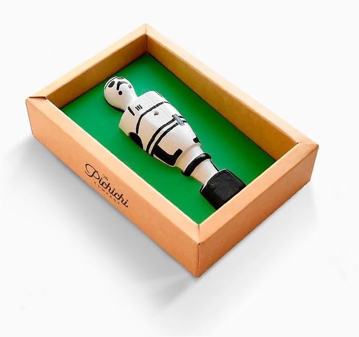 ¡Atentos fans de Star Wars y los futbolines! ¡The Pichichi Company ha creado una exclusiva figura de futbolín de un Stormtrooper! Esta figura 100% artesanal de 12 cms está hecha de madera y ha sido pintada a mano con un cuidado excelso. Exponla en su caja con ventana transparente o ponla en tu futbolín y junta dos de los mundos más divertidos que existen: ¡fútbol y Star Wars! ¡Colecciona todas las figuras distintas que hay de célebres personajes de las viñetas y el cine y juega unas partidas únicas con tus amigos! ¡Que la Fuerza te acompañe!