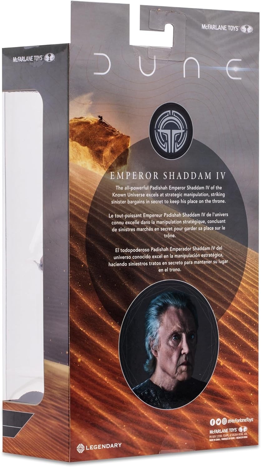 El rico universo de Dune, la épica saga espacial nacida de la mente de Frank Herbert, ha llegado a los cines de nuevo de la mano de Denis Villeneuve. En esta nueva adaptación de la poderosa historia, el Emperador Shaddam IV es interpretado por Christoher Walken, y ahora podrás tener su real presencia en tu colección con esta figura articulada de 18 cms. Es una creación de licencia oficial de McFarlane que incluye peana de exposición y tarjeta coleccionable del personaje. Está hecho de PVC y lleva puesta una discreta túnica marrón.