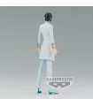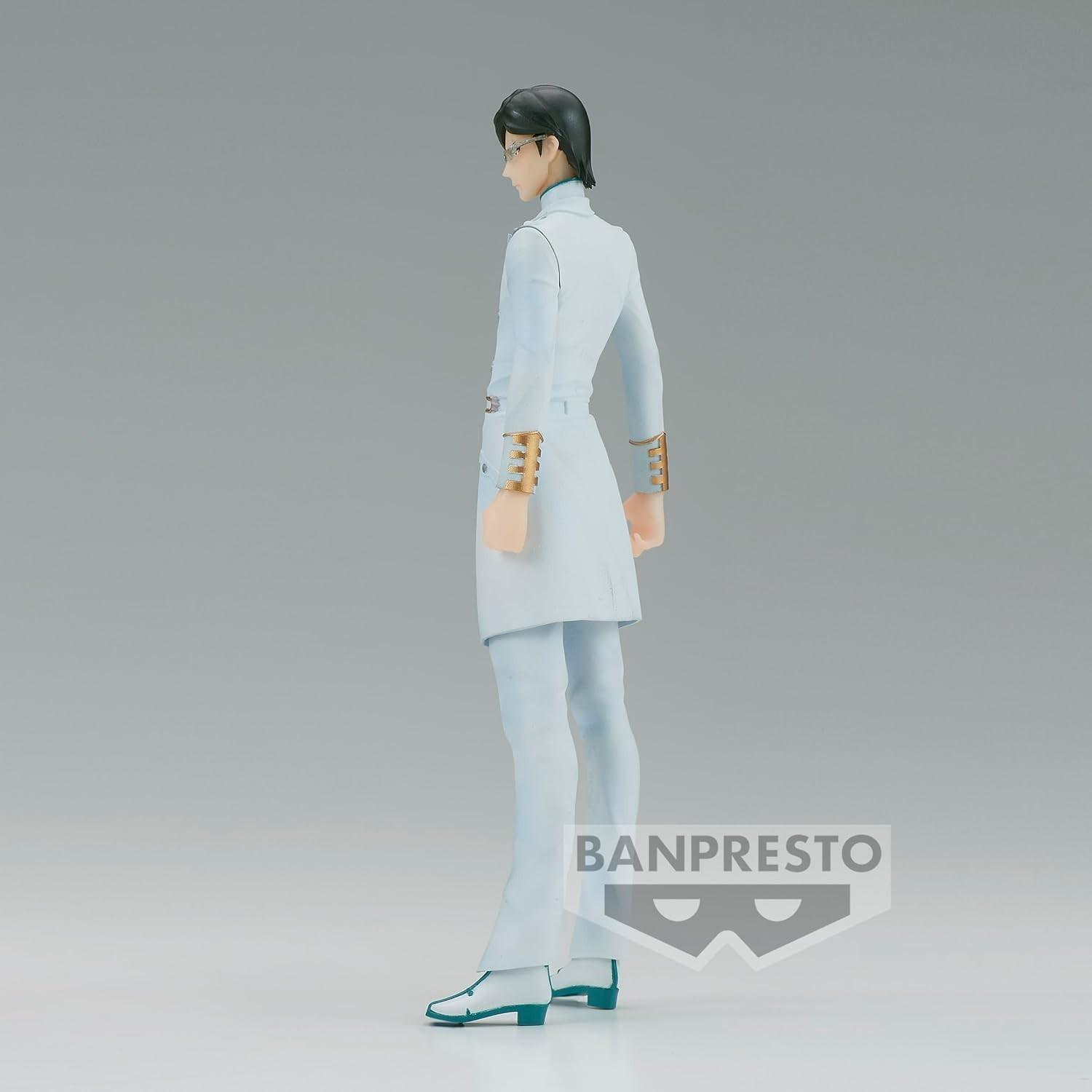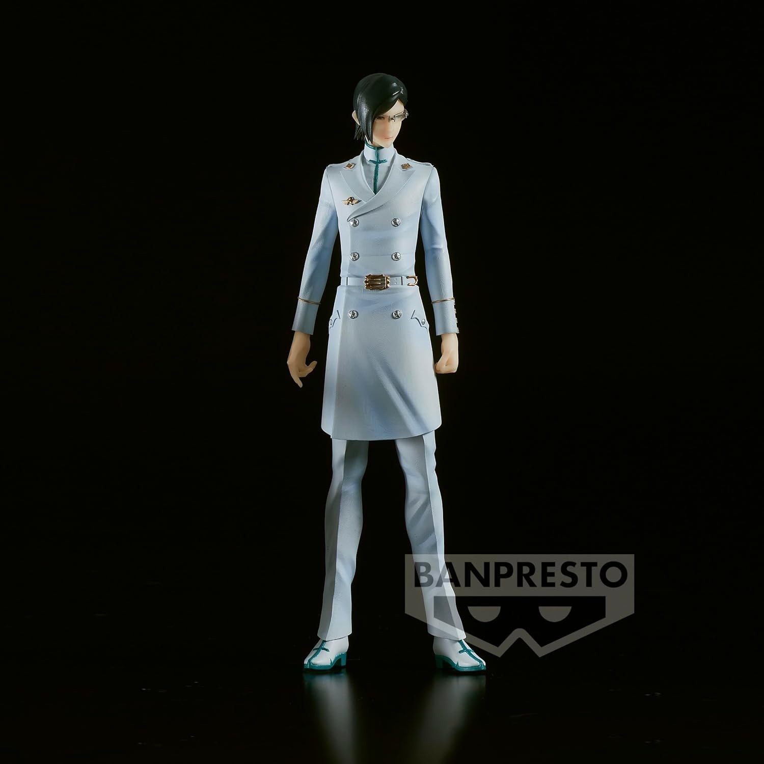 La figura de Uryu Ishida de 17 cms encapsula la determinación del habilidoso Quincy en "Bleach, Solid and Souls". Vestido con su característico atuendo de color blanco, la figura destaca la precisión de sus detalles, desde las gafas hasta la gabardina. La pose tranquila y paciente, y la expresión seria reflejan su naturaleza valiente y decisiva, haciendo de esta figura una representación cautivadora y fiel del personaje de "Bleach". Es la figura B de la colección.
