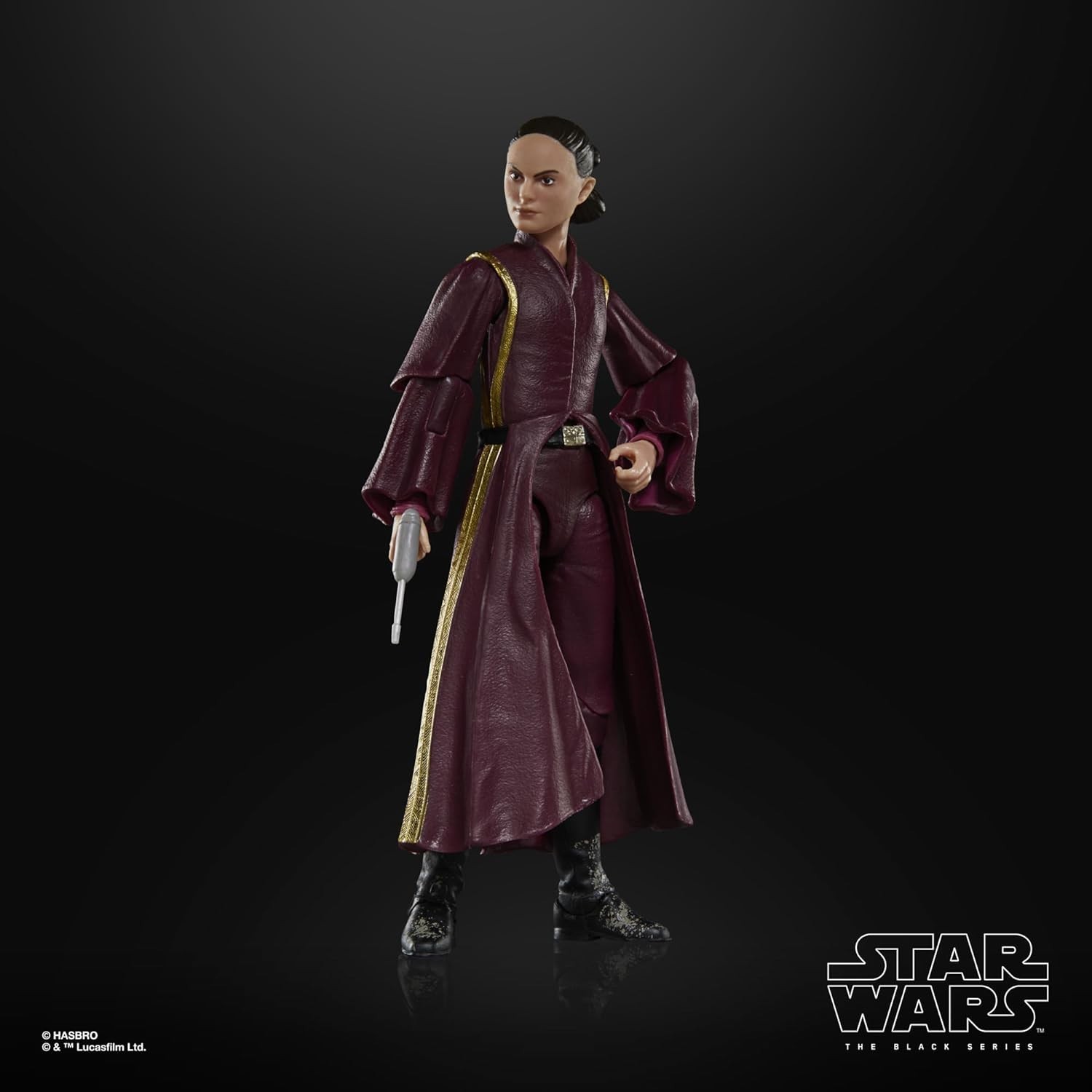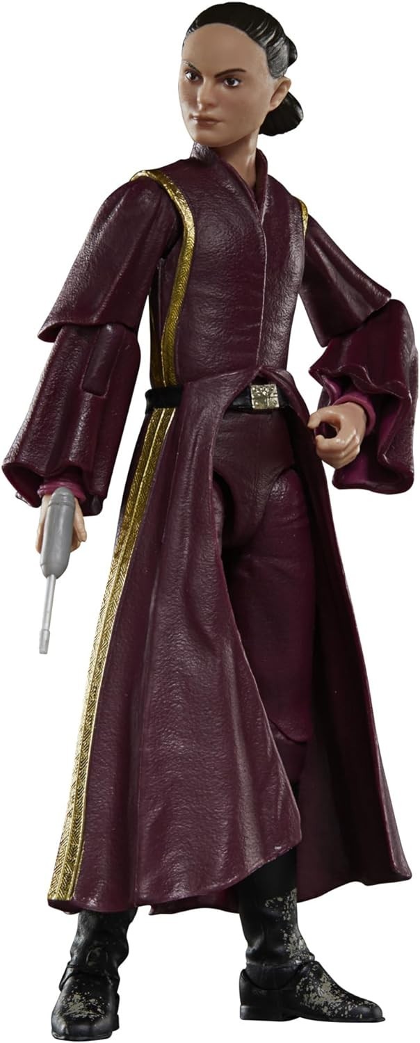 La reina Amidala era una gran amante y protectora de su planeta natal, Naboo. Esta valiente monarca fue interpretada por Natalie Portman en la trilogía de precuelas de Star Wars. Esta figura de 15 cms que nos trae Hasbro para la línea Black Series, está inspirada en la primera aparición de Padmé, en “La Amenaza Fantasma”. Está hecha de PVC resistente e incluye una mano intercambiable y dos blásters láser. Los que usaba en el clímax final del Episodio I.