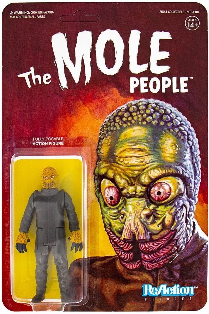 La Universal produjo una gran cantidad de películas con las criaturas más aterradores e icónicas del cine a lo largo de varias décadas. Unas de estas criaturas eran la gente 'Mole', que aparecían en la película llamada "The Mole People (Bajo el signo de Ishtar)". En esta misteriosa cinta dirigida por Virgil Vogel, la raza de topos humanoides que viven bajo unas ruinas sumerias son unas de las criaturas con el diseño más particular de todas las que produjo Universal. Ahora gracias a Reaction Figures y Super7 puedes tener a tu propio topo articulado hecho de PVC de gran calidad y que recrea perfectamente el diseño original en sus 9 cms de altura. Viene con un fantástico blíster retro que parece sacado del mismo año 1956 en el que se estrenó la película.