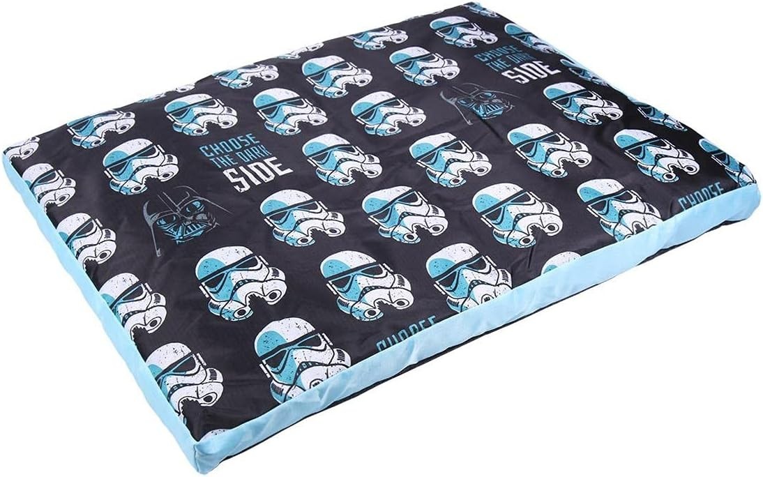 Tu perrete podrá descansar con todo el poder del lado oscuro de su lado. Esta colchoneta de 65 x 42 cms, tiene ilustraciones de los cascos de stromtroopers y de Darth Vader en su parte superior. En la parte posterior tiene pequeños puntos de goma que ayudan a que se pegue al suelo. Tiene licencia oficial Star Wars y Disney y ha sido creada por la marca española Cerdá. Una maravilla de color negro y verde para que tu mascota repose como el mismísimo Lord Vader.