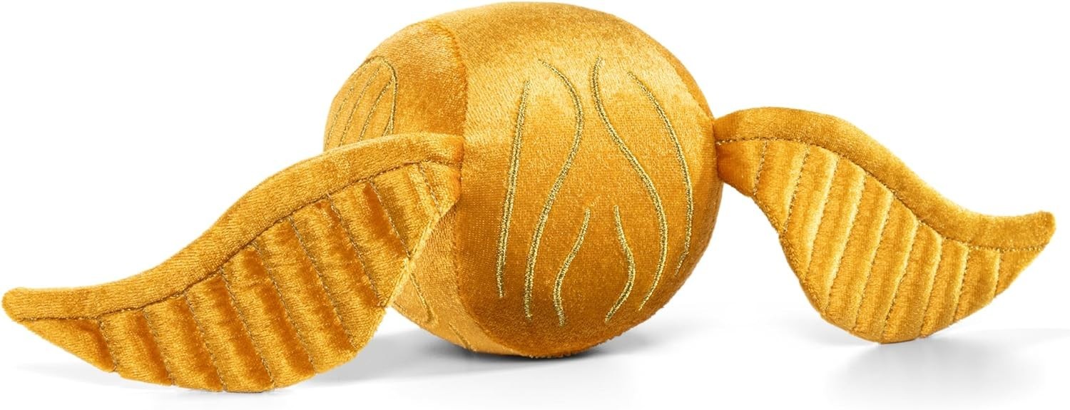 La escurridiza Snitch Dorada, la pelota voladora más valiosa del famoso deporte del Quidditch, será ahora parte de la colección de peluches del mundo mágico que adorna tu cama. Es una creación de licencia oficial por parte de The Noble Collection y Wizarding World, y es una réplica en forma de peluche y de 10 cms de alto de este icónico objeto del universo de Harry Potter. Está hecho de fibras de poliéster.