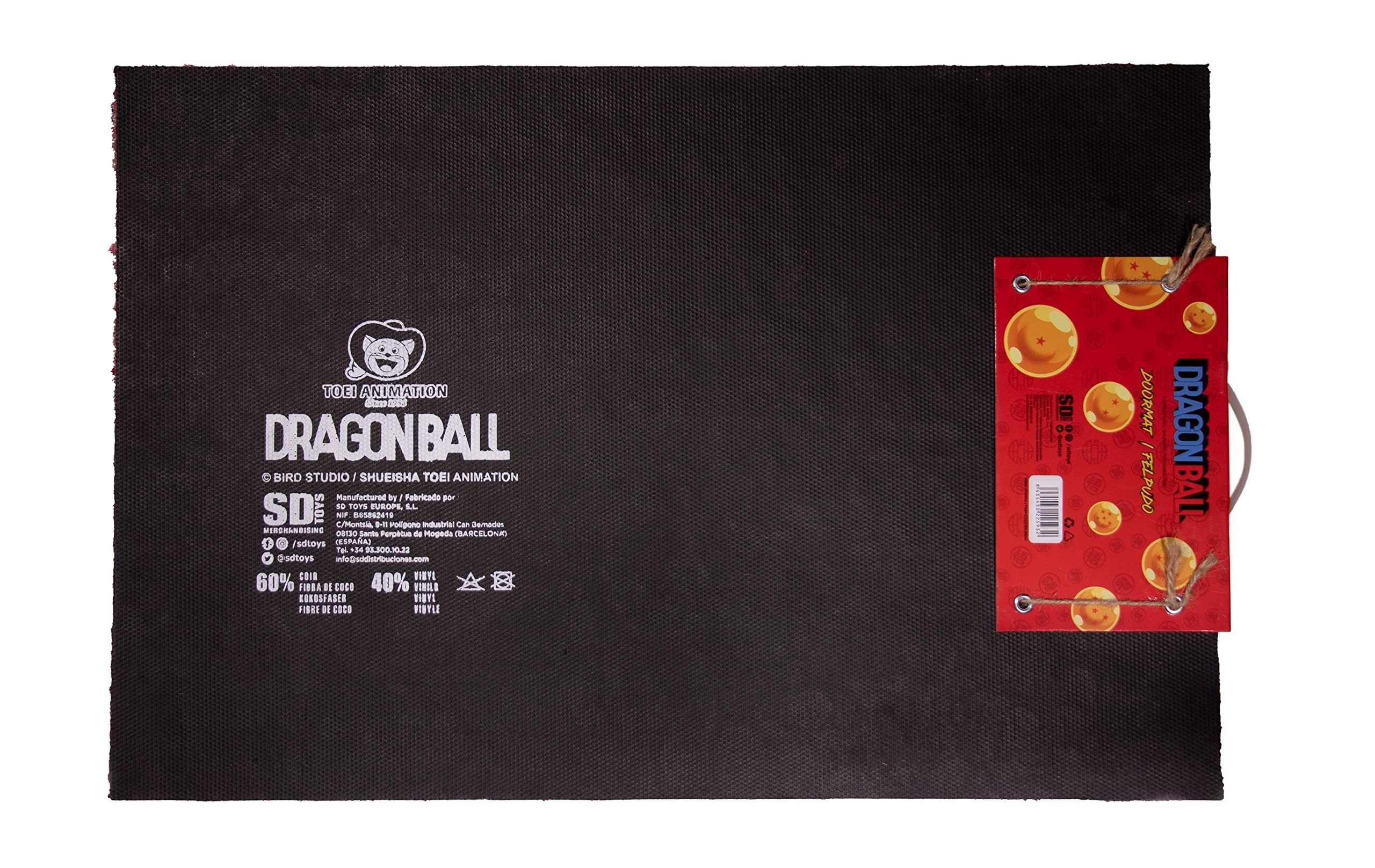¡Recibe a tus invitados con el poder del universo Dragon Ball! Este espectacular felpudo de 60 x 40 cms, fabricado con fibra de coco resistente y base de PVC antideslizante, es el complemento perfecto para el hogar de cualquier fanático de la legendaria serie. Sobre un elegante fondo negro, destaca en el centro el icónico diseño de la Bola de Dragón de 4 estrellas, un símbolo de aventura y esperanza para los seguidores de Goku y sus amigos. Los colores vibrantes de la esfera resaltan a la perfección, haciendo de este felpudo no solo un elemento funcional, sino también una pieza decorativa que rinde homenaje a este clásico del anime. Gracias a la fibra de coco, el felpudo ofrece una excelente capacidad para atrapar suciedad y polvo, mientras que el PVC antideslizante asegura que se mantenga firme incluso en los días más ajetreados. Ideal para la entrada de tu hogar, este felpudo combina durabilidad con un diseño único que hará sonreír a todo amante de Dragon Ball. ¡Deja claro que en tu casa se respira espíritu Saiyajin y celebra la magia de las esferas del dragón desde el momento en que cruzas la puerta!