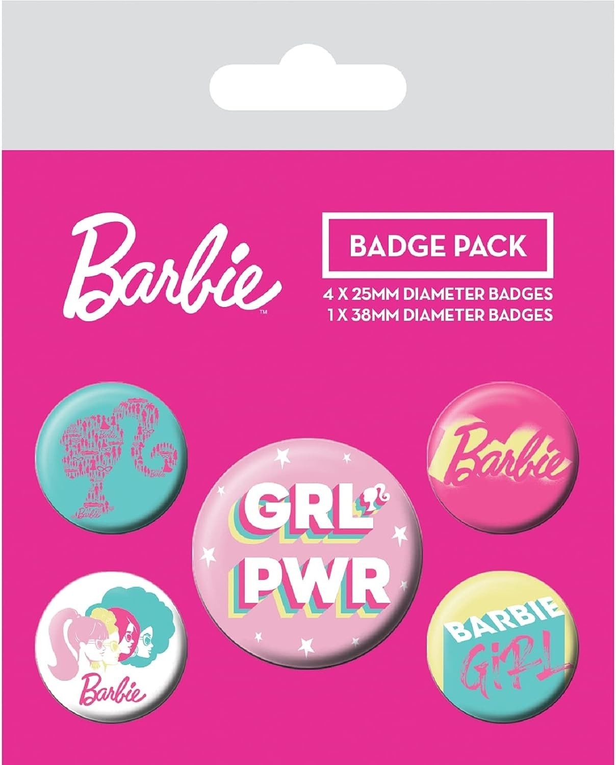 Únete al exclusivo grupo de fans de Barbie con este set de 5 chapas de Girl Power. Miden entre 2,5 cms y 3,8 cms, y tienen decoraciones que rinden tributo a la icónica muñeca de Mattel. Es un artículo de licencia oficial creado por Pyramid para que vayas por ahí expresando tu amor por la rubia más famosa del mundo.