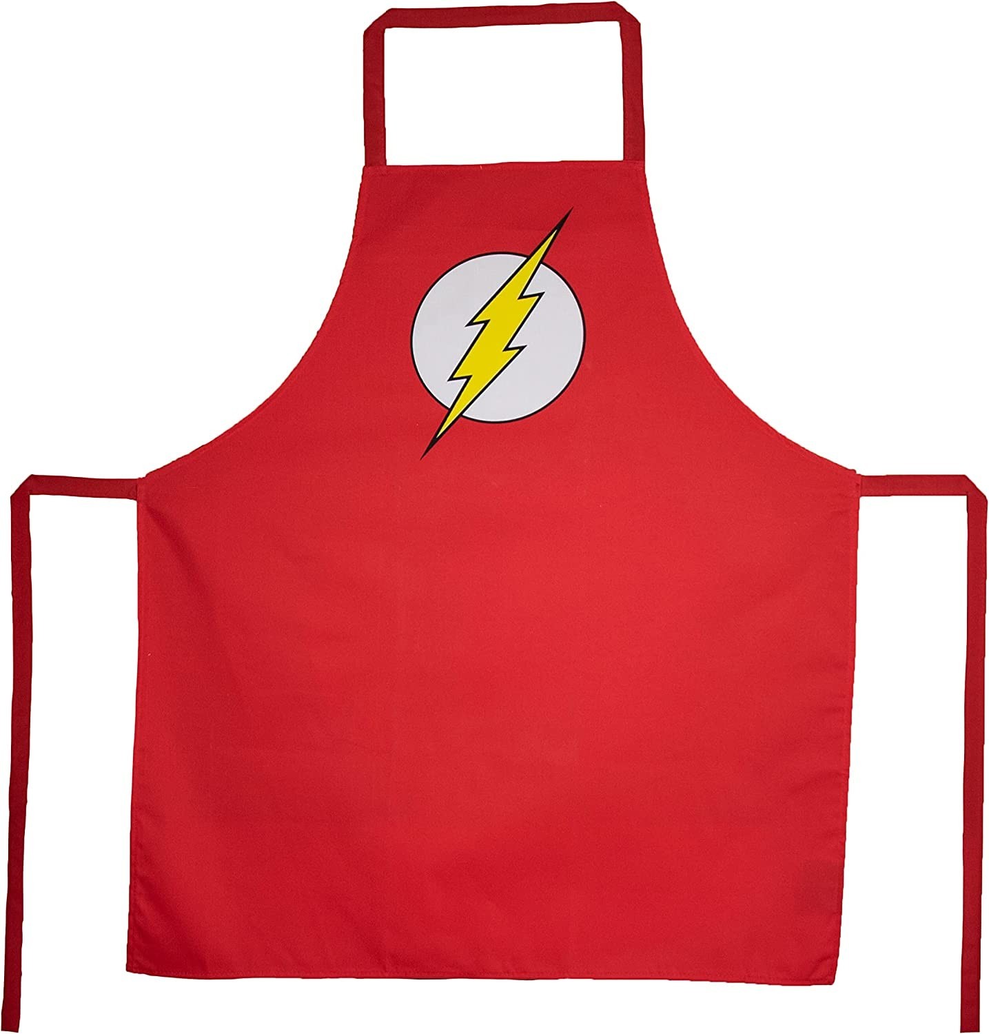 ¡Prepárate para ser mas rápido que un rayo cocinando tus platos favoritos con el delantal de Flash que nos trae SD Toys! Es un producto oficial de DC y Warner Bros y es de color rojo con el famoso rayo amarillo sobre círculo blanco que forma el símbolo de Flash, el superhéroe velocista de la Liga de la Justicia. Tiene dos tiras para poder atártelo haciendo un lazo y proteger tu uniforme de superhéroe con este colorido delantal. Está hecho de tela de gran calidad y viene en una caja temática con los colores característicos de Flash y una ilustración del personaje en la parte de atrás. ¡Corre a por él!