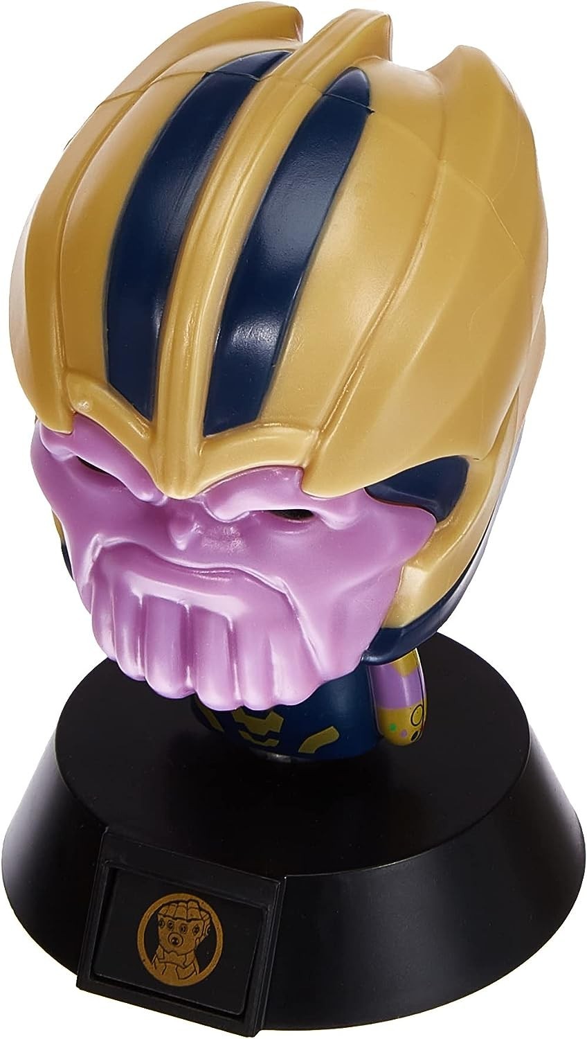 El mayor enemigo al que los Vengadores tuvieron que enfrentarse en las fases 1, 2 y 3 del Universo Cinematográfico Marvel, llega dispuesto a iluminar tu mesita de noche y tus noches de lectura. Paladone, la icónica marca, ha creado esta lamparita bajo el paraguas de, precisamente, su línea Icons. Mide 12 cms de alto y funciona con dos pilas AAA que no están incluidas. Viene en una caja temática con ventana expositora y está basado en la apariencia del temible villano en la película "Avengers: Endgame".