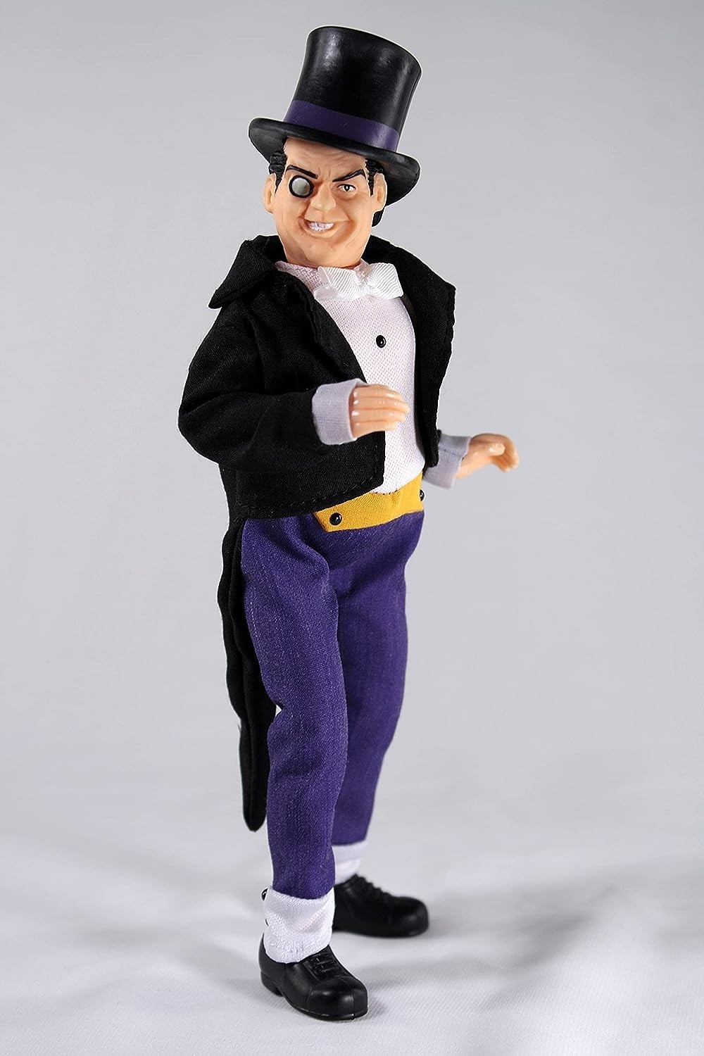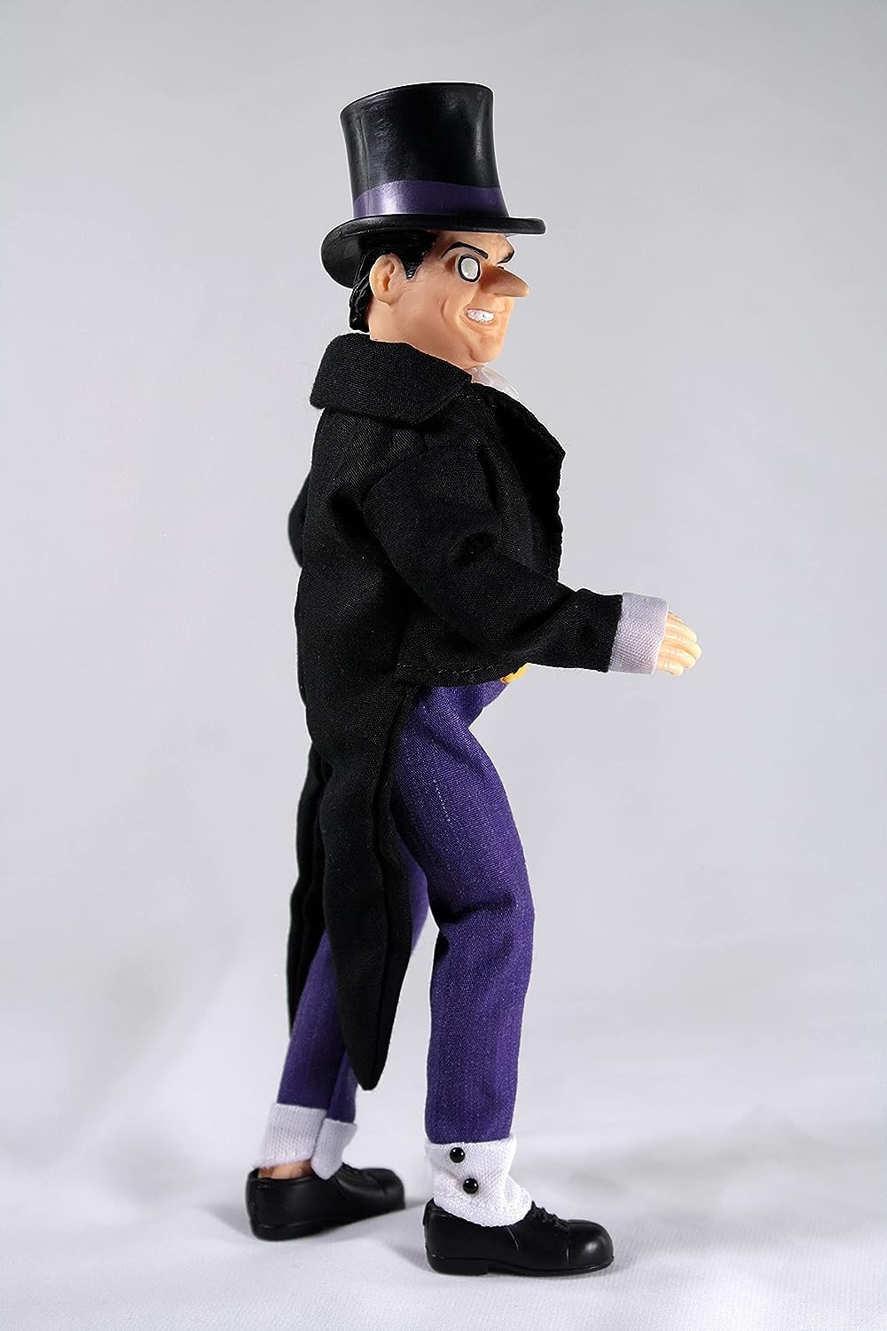 El capo mafioso más poderoso de todo Gotham City llega a tu colección de figuras vintage… Oswald Cobblepot, más conocido como El Pingüino, es uno de los villanos más icónicos de la galería de Batman. Este criminal de gusto exquisito ha sido creado en forma de figura de inspiración retro por la legendaria marca Mego, especializada en figuras artesanales basadas en los personajes más reconocidos del cine y la televisión. El Pingüino de DC Cómics que encontrarás en este blíster está inspirado en el aspecto que el personaje lucía en su encarnación de los años 60. Tiene 14 articulaciones, mide 20 cms y está hecho de PVC y textil sintético que ha sido hecho a medida.