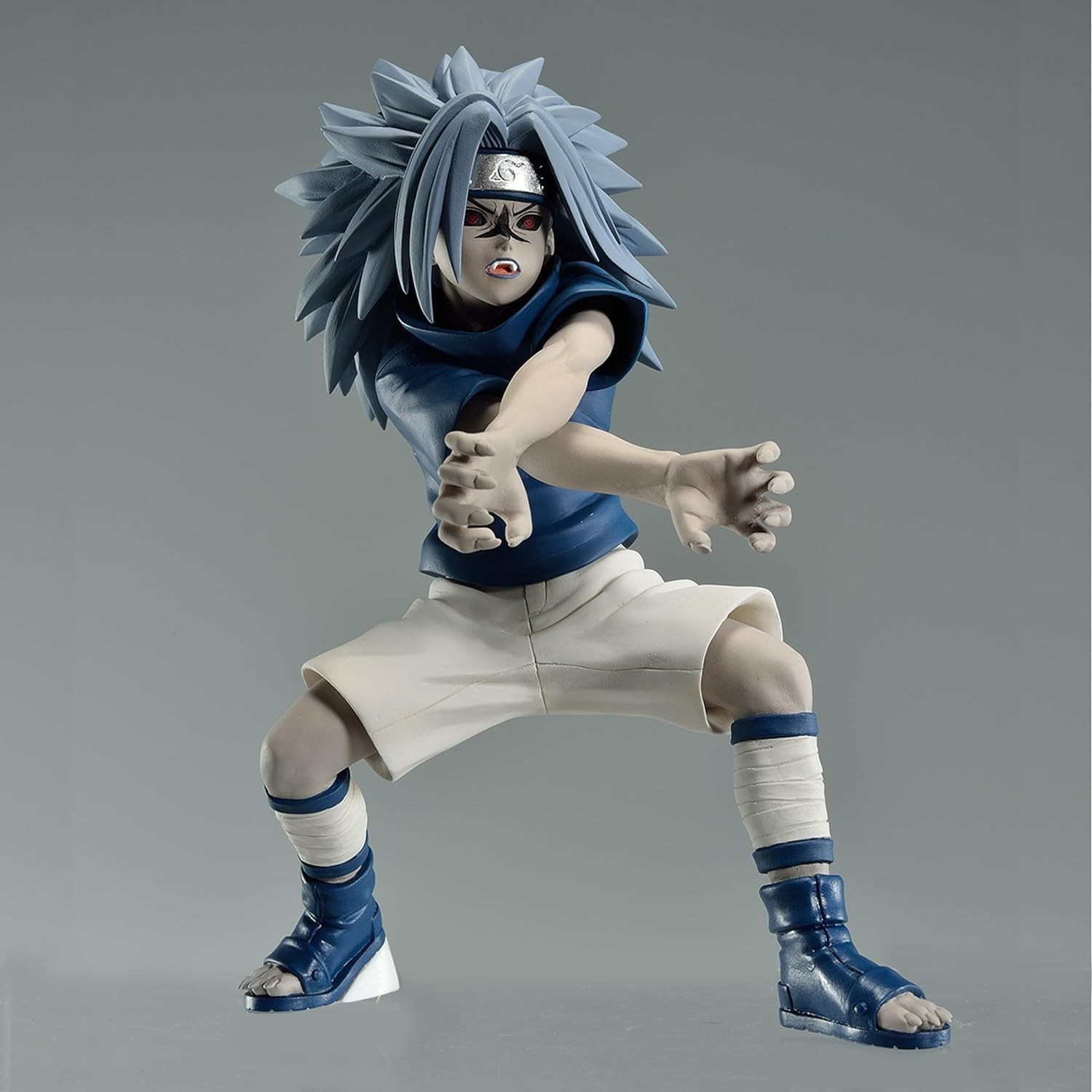 El Clan Uchiha tiene entre sus filas a Sasuke, que se presenta al comienzo de su aparición en “Naruto” como un estudiante de la Academia Ninja de Konoha. Compañero de Naruto, Sasuke descubrirá que su hermano es el responsable del trágico destino que sufrió su clan. Esto iniciará un camino de venganza en el que se embarcará contra su propia sangre. Con los altibajos morales que sufre Sasuke, la serie de Naruto demostró que tenía una carga emotiva y filosófica mucho más elevada de lo que muchos se pensaron. Bandai y Banpresto nos traen la figura de Sasuke II hecha de PVC y con una altura de 13 cms. Pertenece a la línea 20 Aniversario de la serie y viene en una caja temática con imágenes de la figura. Sasuke está en modo poseído con una piel blanquecina y los ojos rojos con la melena azul celeste al viento.
