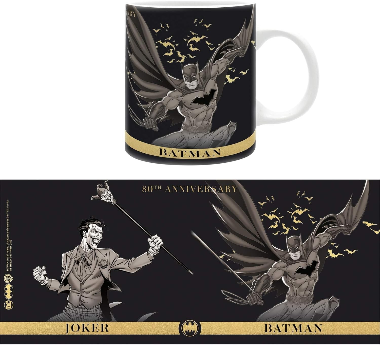 Una de las batallas más icónicas de las viñetas, la que tuvo lugar a lo largo de décadas entre Joker y Batman, es ahora una taza con la que podrás disfrutar de tus bebidas favoritas. Está hecha de cerámica y tiene una capacidad de 320 mls. Creada por Abystyle, tiene licencia oficial DC y es apta para lavavajillas y microondas. Las ilustraciones en gris, blanco y negro son super elegantes y evocan perfectamente a los personajes de las viñetas.
