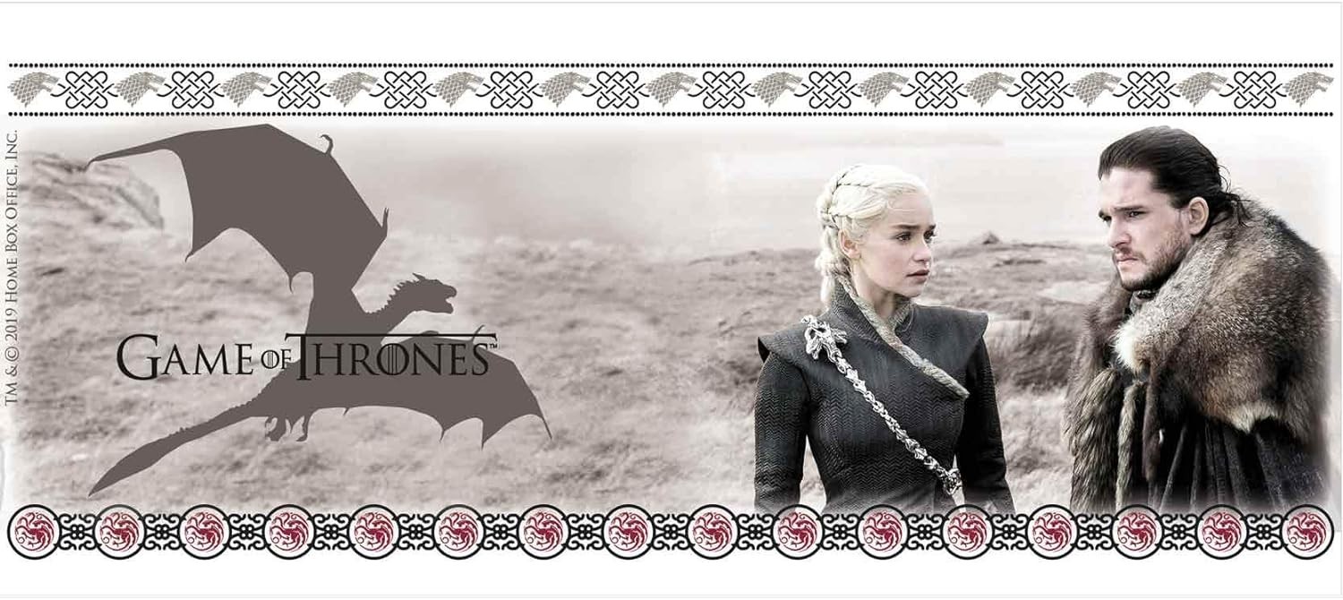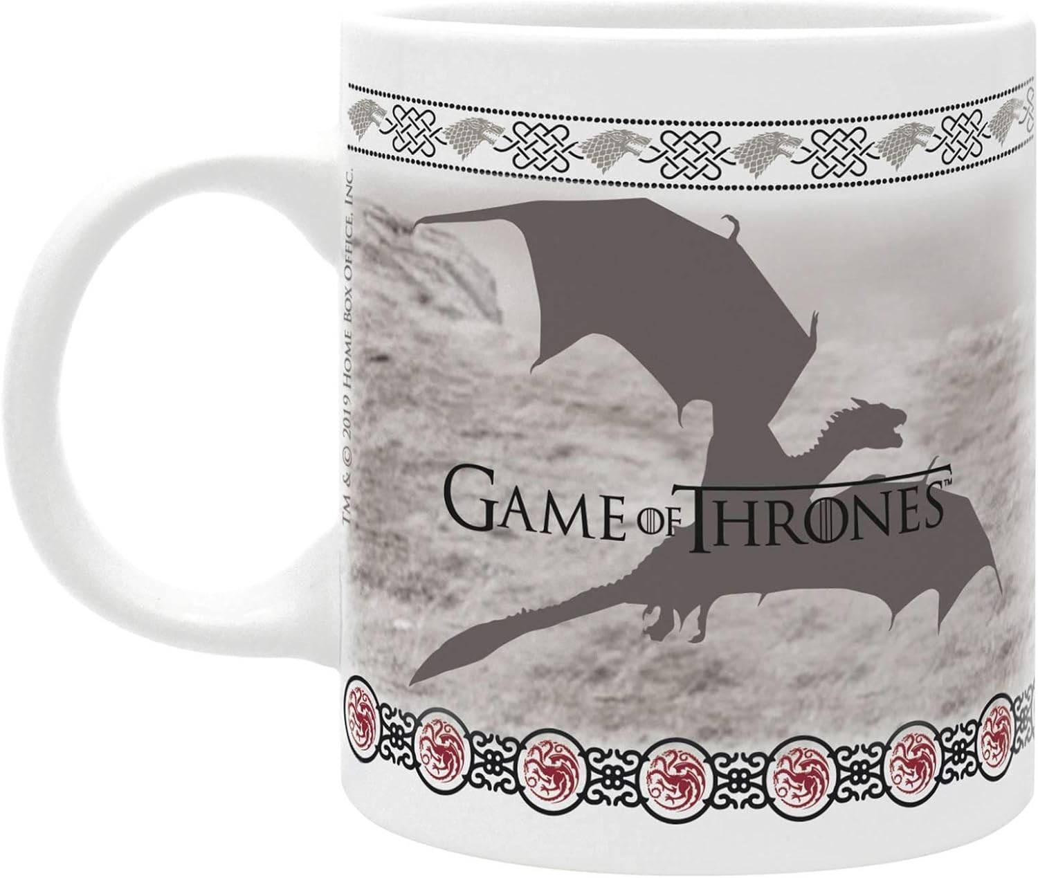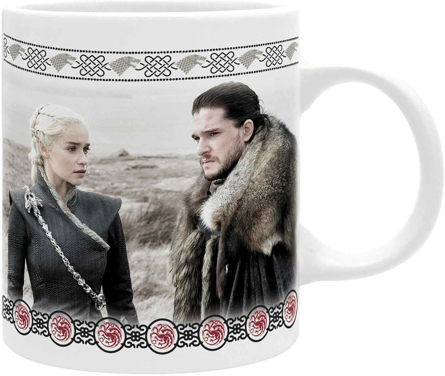 El tumultuoso amor entre Jon Nieve y Daenerys Targaryen fue uno de los hilos conductores de las últimas temporadas de Juego de Tronos. Los dos protagonistas de la aclamada serie de HBO están presentes en esta taza de licencia oficial hecha de cerámica que ha creado Abystyle. Tiene una capacidad de 320 mls y tiene una foto de Jon y Daenerys en su superficie, además de una ilustración de un dragón sobrevolando el mar. Es apta para lavavajillas y microondas.