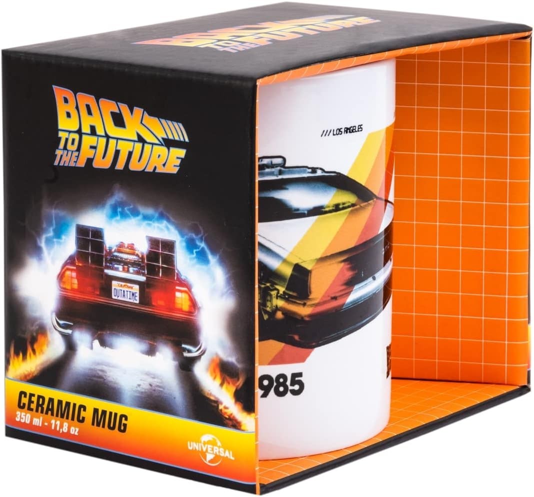 Una taza que rinde homenaje a los elementos más ochenteros de la saga de Regreso al Futuro, eso es lo que tendrás con esta maravilla hecha de cerámica. El Delorean y unas líneas naranjas que nos retrotraen a los diseños de 1985, decoran esta taza de 320 mls que viene en una caja temática. Es una creación de Erik que tiene licencia oficial Universal y Amblin, las productoras encargadas de darle vida a esta inmortal saga del cine de aventuras. Es apta para lavavajillas y microondas.