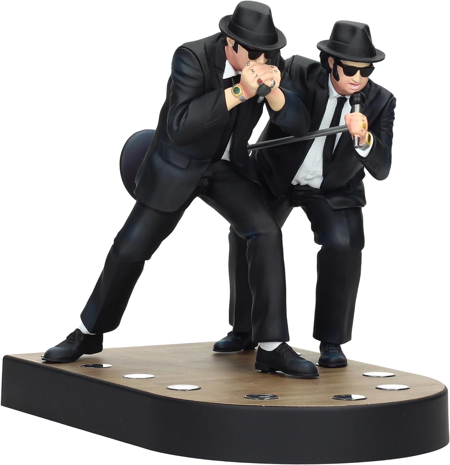 Jake y Elwood, los protagonistas del original musical, The Blues Brothers, llegan a los escenarios (o a tu casa), con este pack de dos figuras con base de escenario con luces. Es un espectacular diorama con luz que funciona con dos pilas AAA que no están incluidas, pero que cuando las pongas, convertirán el lugar en el que las pongas en una discoteca espectacular. Las figuras muestran a los dos personajes que interpretaban Dan Aykroyd y John Belushi, cantando y bailando. Están hechas de PVC que ha sido pintado con una atención al detalle excepcional, incluyendo sus anillos. Es una creación de licencia oficial de SD Toys.