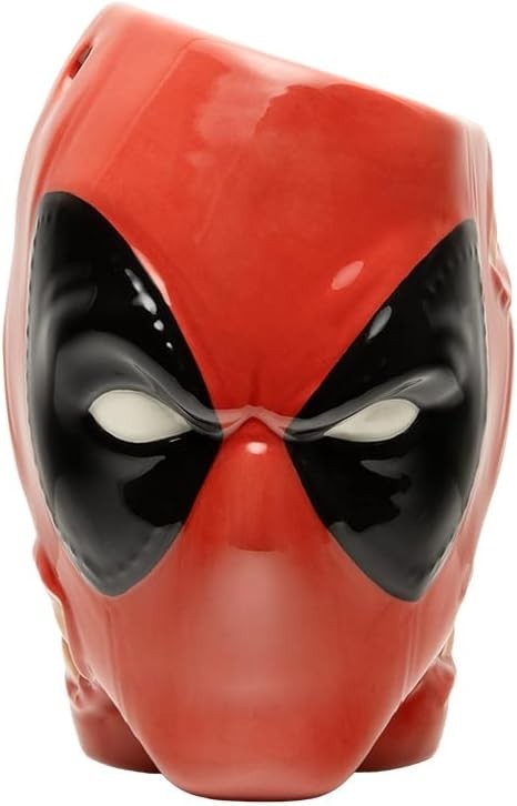Masacre, o Deadpool, el mercenario bocazas de Marvel, cuidará a partir de ahora tus plantas. Si, como lees, este bote macetero de 13 cms es ideal para tener tus plantitas en casa a la forma Marvel. O si lo prefieres, puedes usar esta cabeza de Deadpool a modo de bote para bolígrafos o lápices de colores, como los que usa Deadpool para pintar sus cuadros. Está hecho de cerámica y no es apto para lavar en lavavajillas. Pero si que es apto para fardar de tener una cabeza de Deadpool con una de las clásicas expresiones del antihéroe de Marvel. Viene en una caja temática del singular personaje.