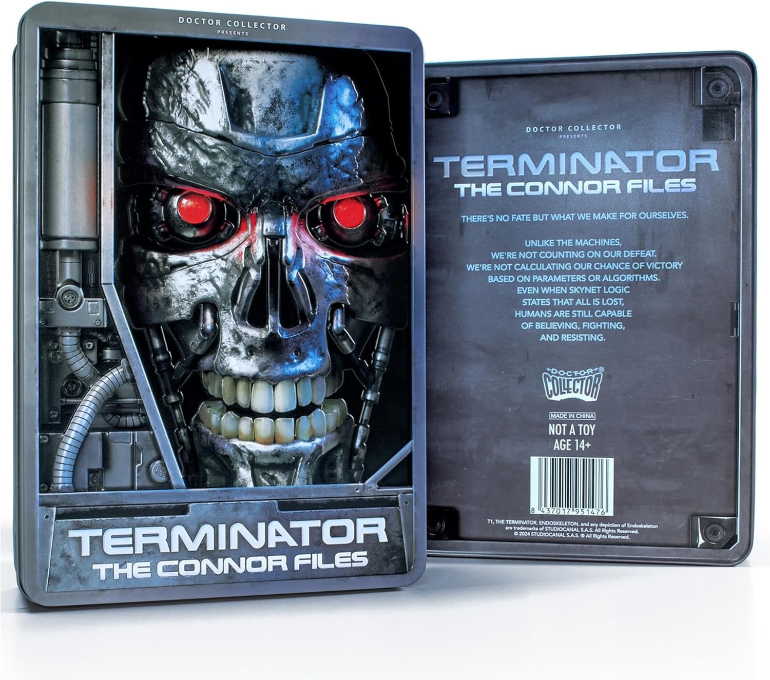 Adéntrate en el universo de Terminator con la Caja Metálica The Connor Files, una creación exclusiva de Doctor Collector. Este kit único incluye una colección de artículos inspirados en la saga, ideales para fanáticos y coleccionistas. Contiene el Tech-Com Resistance Guidebook, un CPU Neural Net T-800, una tarjeta de acceso de Cyberdyne Systems, sobres LAPD y Cyberdyne, un plano del laboratorio de Cyberdyne, y memorabilia como la insignia de Sarah Connor de Big Jeff's, su informe psiquiátrico, identificaciones estudiantiles de Sarah y John Connor, fotos icónicas, boletos de Tech Noir, y reportes de Kyle Reese y John Connor. Además, incluye planos del T-800 y otros objetos llenos de detalles fieles al universo de Terminator. Todo presentado en una caja metálica de alta calidad que rinde homenaje a esta legendaria franquicia. ¡Un artículo imprescindible para los seguidores de Terminator!