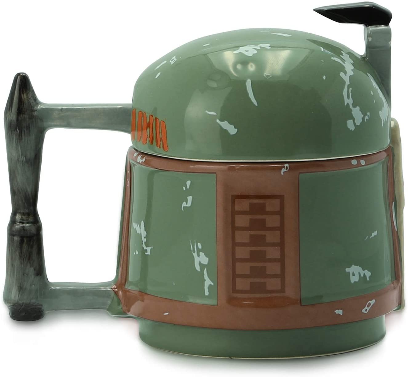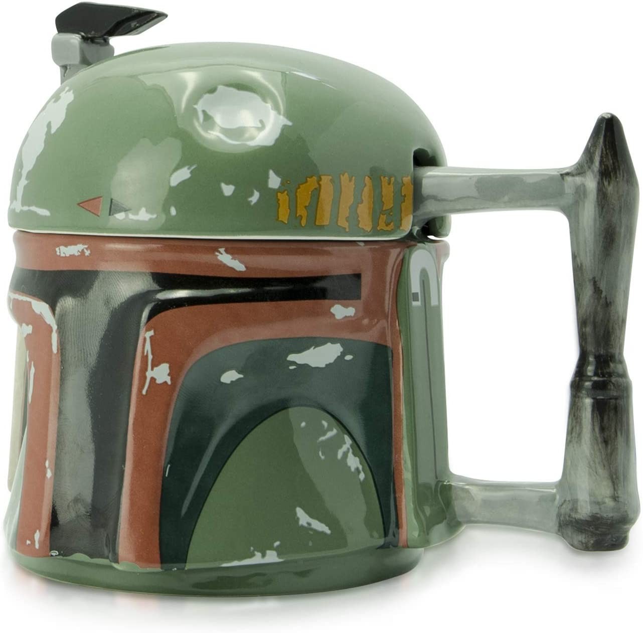 Si quieres pertenecer al gremio de cazarrecompensas y hacer que tus desayunos estén llenos de la energía que necesitas para el día a día, ya puedes hacerte con esta taza 3D que imita el casco de Boba Fett. Tiene una tapa para conservar la temperatura de tu bebida y que no se te enfríe. El trabajo de relieve y de pintura del casco es detallado e impresionante, respetando cada desconchón, desgaste y elemento del diseño original usado en la serie The Mandalorian. Tiene una capacidad aproximada de 300 mls y no es apta para su uso en lavavajillas ni en microondas. Viene en una caja protectora con ventana. Es un producto con licencia oficial.