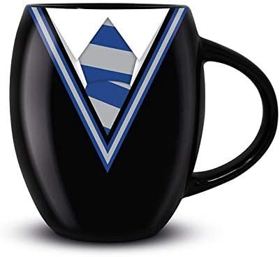 Pyramid International vuelve a zambullirse en los calderos de Hogwarts para traernos una útil pieza de uso diario: una taza inspirada en la casa Ravenclaw. Es una elegante taza ovalada de cerámica de color negro que tiene el escudo de la casa en un lado y en el otro una corbata y los filos de un jersey con los colores gris y azul característicos de Ravenclaw. Tiene una capacidad de 425 mls, de sobra para que entre tu café... o té, si tienes un estilo inglés más acorde a lo que se lleva entre los muros de Hogwarts. Un regalo sensacional y elegante para los fans del mundo mágico que quieran una taza de licencia oficial.