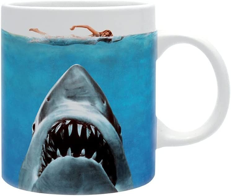 De Abystyle nos llega una taza de cerámica que es icónica y original a partes iguales. Con una capacidad de 320 mls, podrás beber tu bebida favorita con esta taza de "Jaws (Tiburón)", la película con la que Steven Spielberg inició la moda y el negocio de los 'blockbusters' veraniegos. Además de ser un peliculón, "Tiburón" ha inspirado cientos de originales regalos como esta taza que tiene una ilustración del póster de la película y en la parte posterior tiene las instrucciones de baño de la isla de Amity, lugar en el que se desarrolla la película. Viene en una caja temática y podrás usar la taza tanto en el lavavajillas como en el microondas.