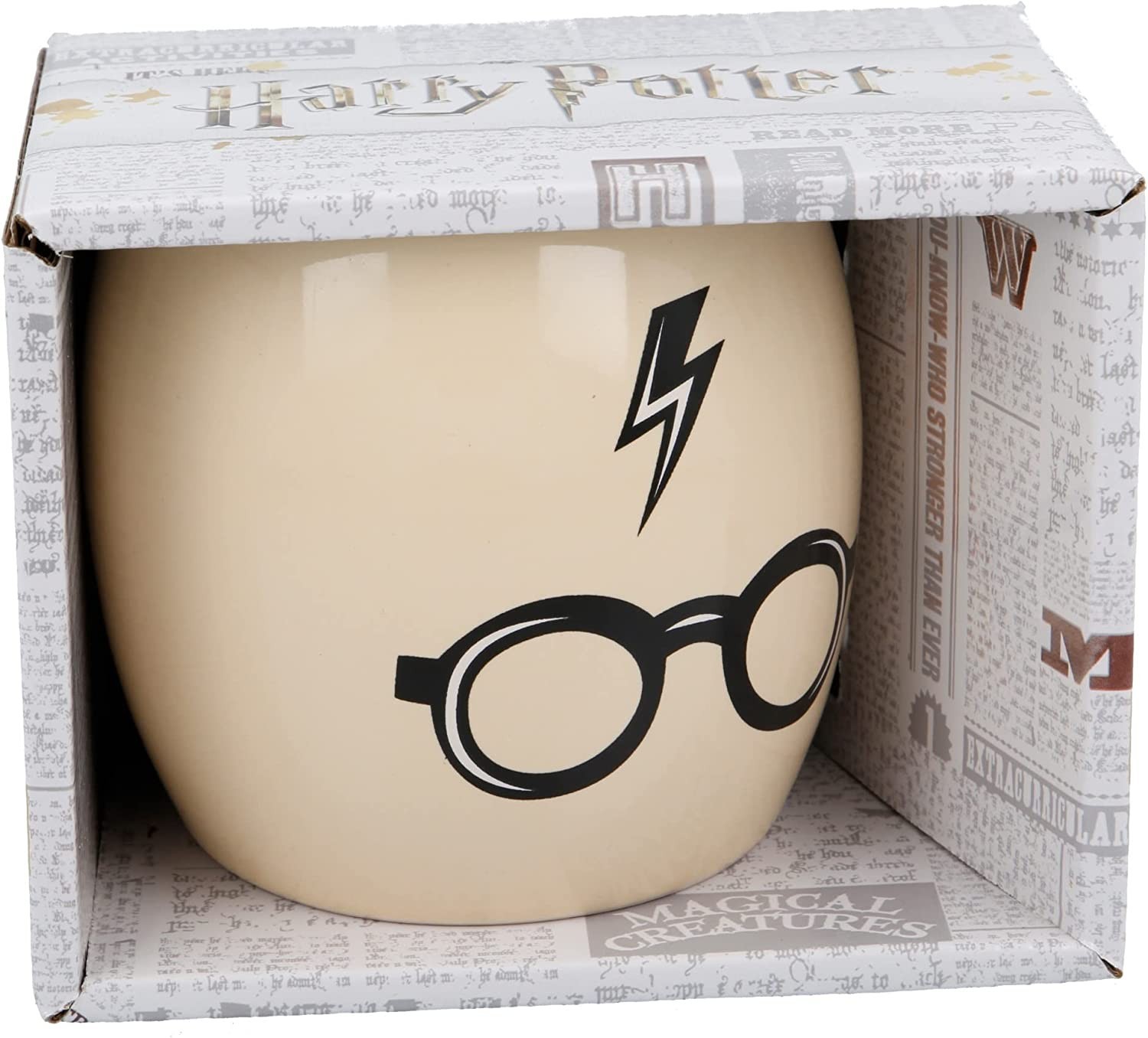 ¡Por fin tenemos una de las tazas más originales de Harry Potter! La marca Stor ha creado esta pieza de cerámica de gran calidad que tiene una capacidad de 380 mls y tiene un diseño… original. Esta taza ovalada de elegante color beige tiene dos ilustraciones de color negro. En un lado encontrarás el nombre del protagonista de la saga mágica creada por JK Rowling y en el otro una ilustración con las gafas redondas del personaje y su característica cicatriz en forma de rayo. Coge energía cada mañana con esta taza oficial del Wizarding World que te llegará en una caja temática de este universo lleno de magia.