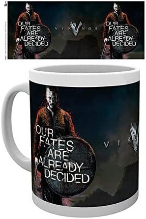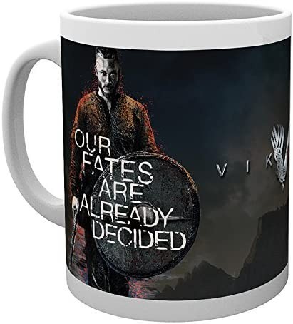 Siente la llamada del Valhalla... La marca GB Eye nos trae una taza de cerámica de gran calidad con capacidad aproximada de 320 mls que viene en una caja temática. La taza es un producto oficial de la serie "Vikings" y tiene en su superficie una ilustración de Ragnar con la frase 'Our fates are already decided'. Hazte con la tuya y úsala en tus festines de vikingo. Es apta para usar en microondas y lavavajillas.