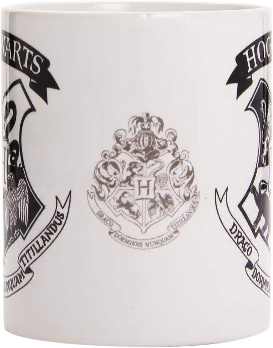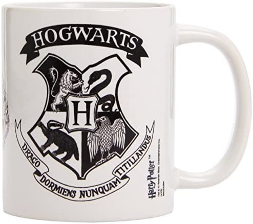 El Colegio de Magia y Hechicería más famoso del mundo es sin duda uno de los que también tienen el escudo más reconocible. Creado por la escritora JK Rowling y hogar de Harry Potter y amigos durante buena parte del año, Hogwarts llega a tus desayunos para que cojas cada día fuerzas con su taza exclusiva. Esta creación de Pyramid International está hecha de cerámica, tiene una capacidad de 315 mls y es apta para meter al lavavajillas y al microondas. Viene en una fantástica cajatemática del Wizarding World, la línea de productos oficiales de la saga de Harry Potter. En su superficie tiene el elegante escudo de Hogwarts en color negro sobre fondo blanco.