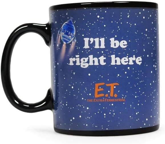 Tu corazón se iluminará al usar esta taza igual que lo hacía el de E.T., el extraterrestre que marcó a más de una generación. Ahora los fans de los ochenta, de los aliens, de E.T. y… de los desayunos, podréis ser felices cada mañana gracias a la taza que nos trae Half Moon Bay. Tiene efecto térmico, lo que quiere decir que cuando eches líquido caliente, el universo que viene representado en la taza se convertirá en azul y podrás leer una de las frases más icónicas de E.T., con la que se despedía de Elliott: “I’ll be right here”. No es apta para lavavajillas ni microondas. Viene en una caja temática preciosa de tonos azules y con ilustraciones de E.T. Celebra el 40 aniversario de este personaje con uno de los artículos más especiales que podrás encontrar de él.