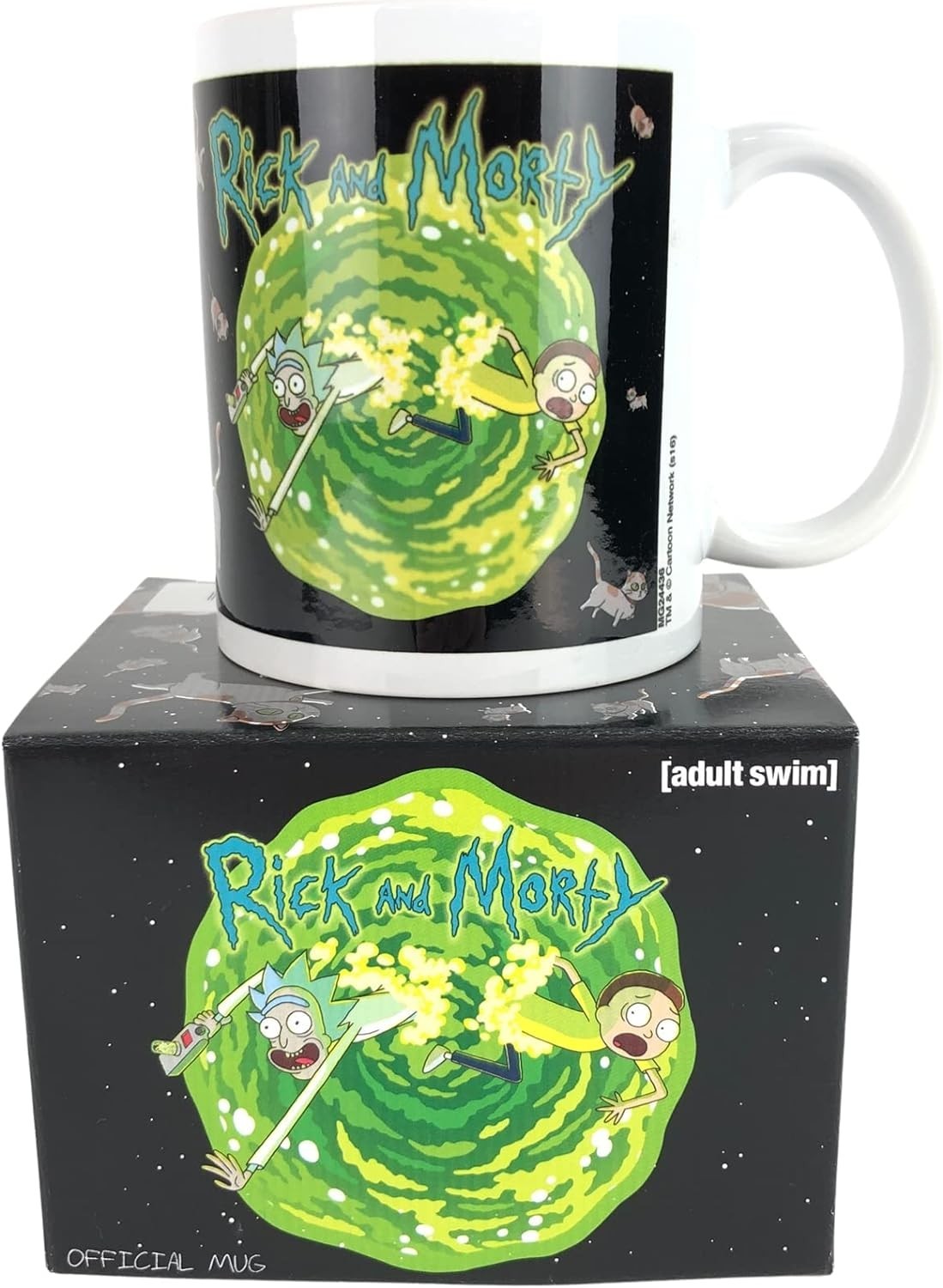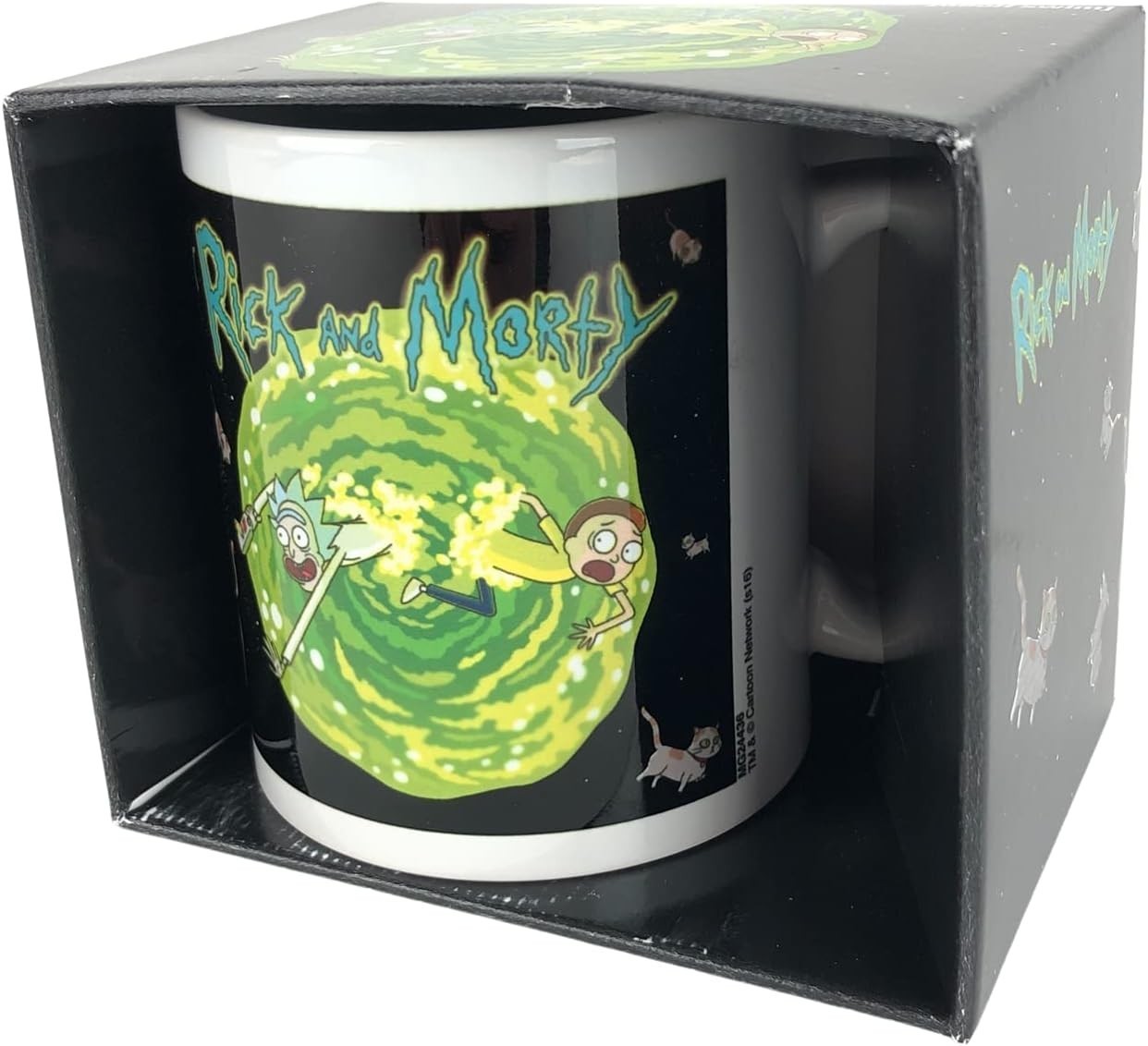 Rick y Morty han pasado por infinitas (por lo menos) dimensiones y universos distintos. Pyramid ha viajado con una de las pistolas de portales hasta uno de ellos para traerte esta exclusiva taza con licencia oficial de Adult Swim y Rick y Morty. Está hecha de cerámica extradimensional y tiene una capacidad aproximada de 320 mls. En su superficie exterior Rick y Morty flotan en el universo mientras salen de un portal rodeados de gatitos también flotantes. Coge fuerzas cada mañana con este científico y su nieto.