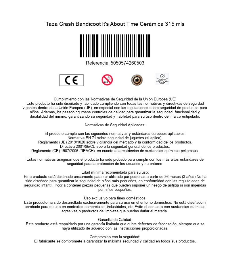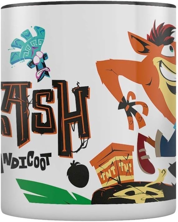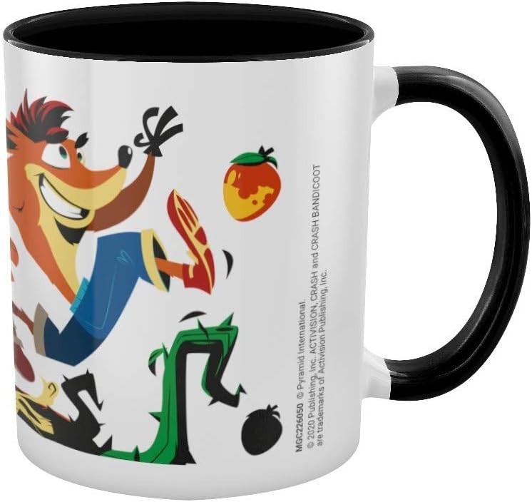 ¡Corre, salta, esquiva! Pero primero… ¡coge fuerzas! Pyramid International ha viajado hasta el mundo del alocado zorro Crash Bandicoot para traerte esta colorida taza de cerámica de 315 mls de capacidad. Es un producto de licencia oficial basado en el videojuego Crash Bandicoot 4: It’s about time. Es apta para lavavajillas y microondas y tiene una ilustración súper divertida de un sonriente Crash saltando varios de los obstáculos míticos de sus juegos. ¡Empieza el día con energía!