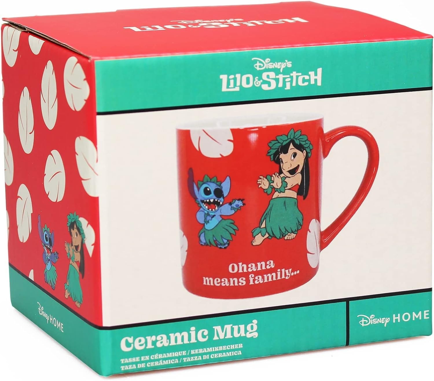 “Family means nobody gets left behind or forgotten”, esa es una de las citas que puedes leer en esta taza, la ora es “Ohana means family”. Con una capacidad de 310 mls y hecha de cerámica, esta taza de licencia oficial Disney que ha creado la marca Half Moon Bay, es un adorable y muy útil homenaje que han hecho a la querida película de animación. Lilo y Stitch están bailando en la otra ilustración que tiene la taza. Es apta para lavavajillas y microondas y tiene un potente color rojo en su superficie.