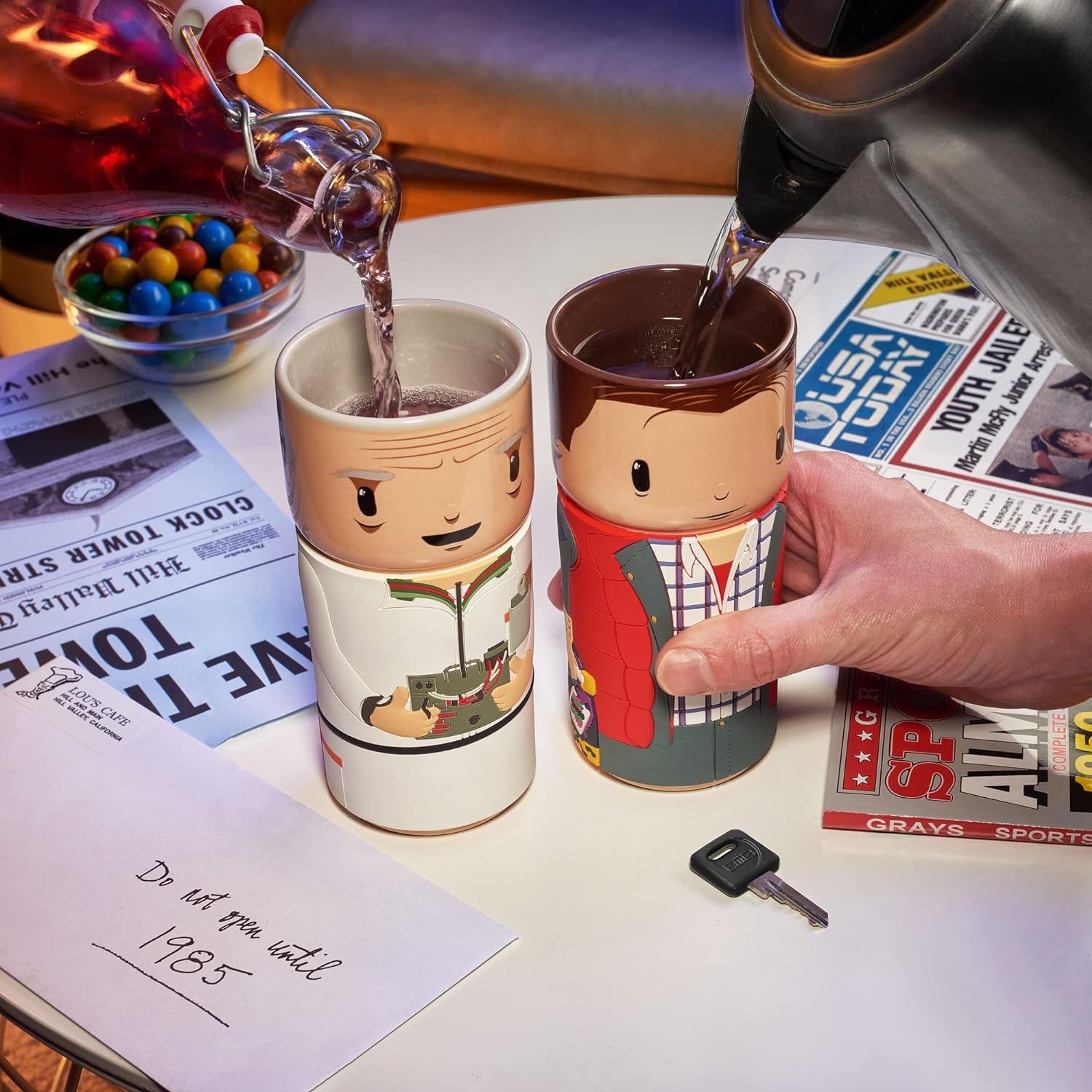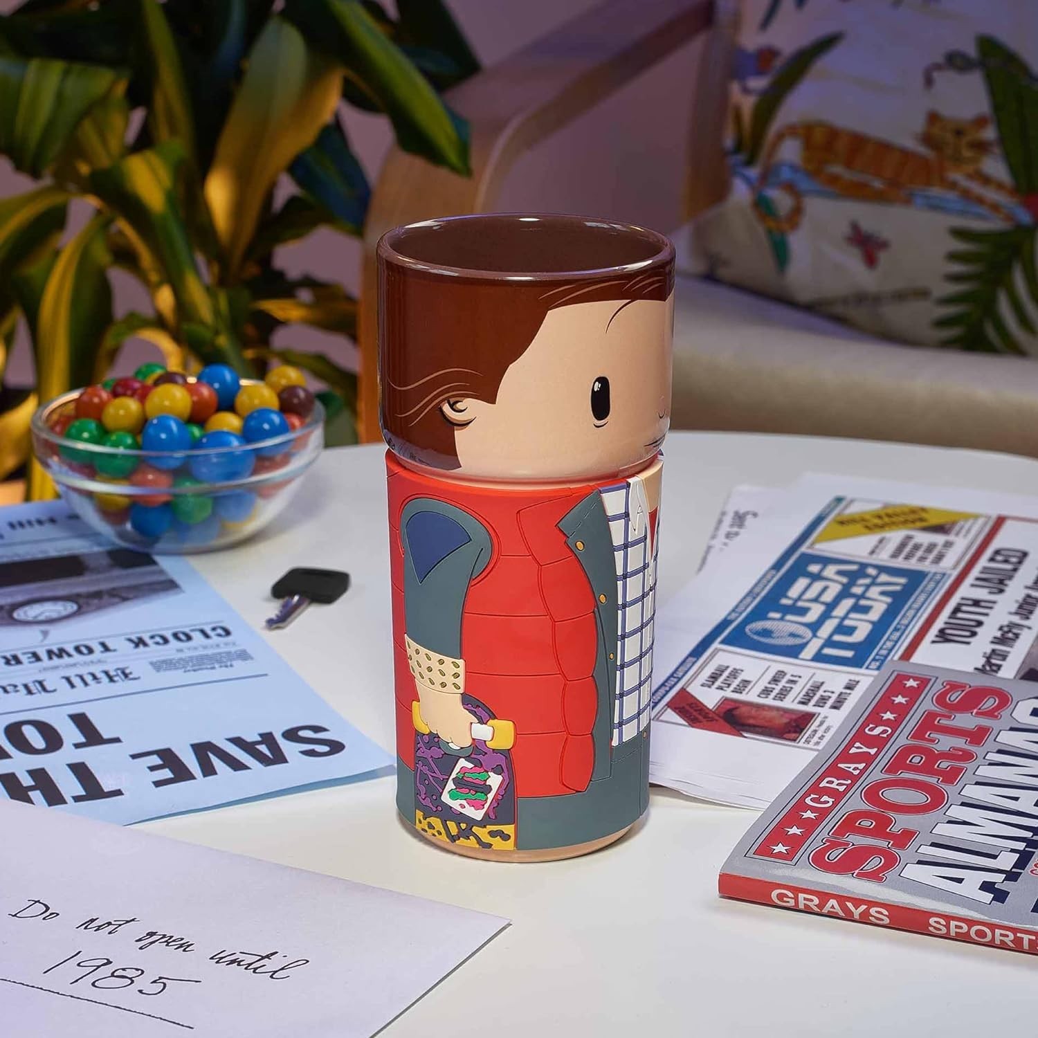¡Coscups! Esa es la línea para la que la marca Numskull ha creado esta simpatiquísima taza de Marty McFly, el aventurero a través del tiempo que protagonizó la trilogía de “Regreso al Futuro”. Forrada de una textura de goma, esta taza de cerámica tiene TODOS los detalles del vestuario de bueno del Marty, interpretado por Michael J. Fox, minuciosamente grabados en la superficie 3D. Con una capacidad de 400 mls y hecha de cerámica, esta taza es perfecta para disfrutar de tus bebidas frías o calientes. No es apta para microondas, pero si para viajar al pasado con Marty mientras disfrutas de tu bebida favorita. A donde vamos no necesitamos… carreteras.