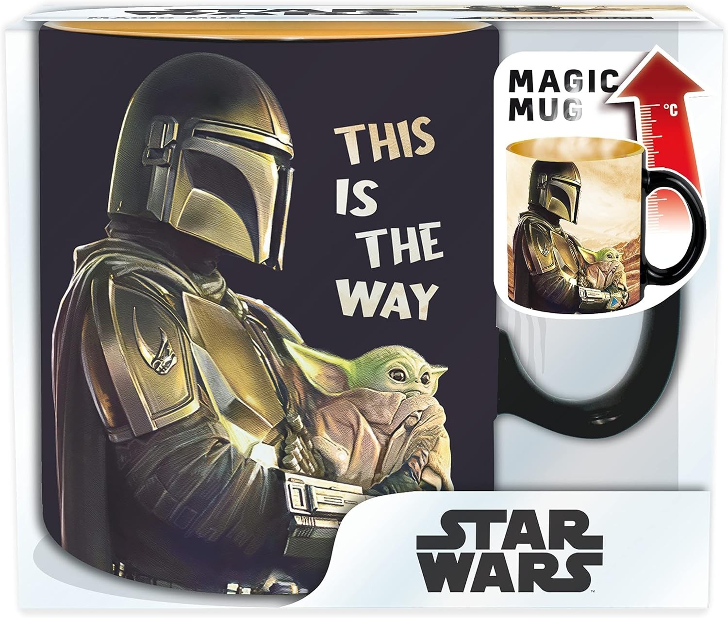 “This is the way”. Este es el mantra con el que Din Djarin, el mandaloriano protagonista de la serie de Disney + “The Mandalorian”, creada por Jon Favreau y Dave Filoni, se guiaba a través del universo. Abystyle ha creado una taza térmica que cambia de diseño cuando eches líquido caliente dentro. La frase desaparecerá y un día soleado en el desierto aparecerá para bañar con su luz a Din y a Grogu. Está hecha de cerámica y tiene una capacidad de 460 mls. Esta taza mágica no es apta para lavavajillas ni microondas. Es de licencia oficial de Star Wars y viene en una caja protectora transparente.