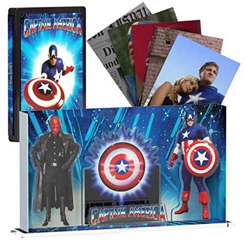 Los fans del conocido como Primer Vengador, el Capitán América, estáis de enhorabuena. Ahora podéis haceros con una edición especial de la primera película del héroe de Marvel, esa rara avis del año 1990 y protagonizada por Matt Salinger. Pero hacer excavación por la historia de Marvel en el cine no está reñido con tener una colección fantástica. Esta edición incluye la película, una caja de blu-ray, una caja steelbook exclusiva con una imágen del Capitán lanzando el escudo sobre un fondo negro y azul estelar y un display de metacrilato que podrás montar. Gracias al display 3D las figuras del Capitán y de Cráneo Rojo acompañarán a tu colección de blu-rays y la llevarán al siguiente nivel. ¡Hazte con el Capitán antes de que se agote! Este pack es uno de los seis disponibles que tenemos de esta película asi que ya sabes... ¡escoge tu favorito!