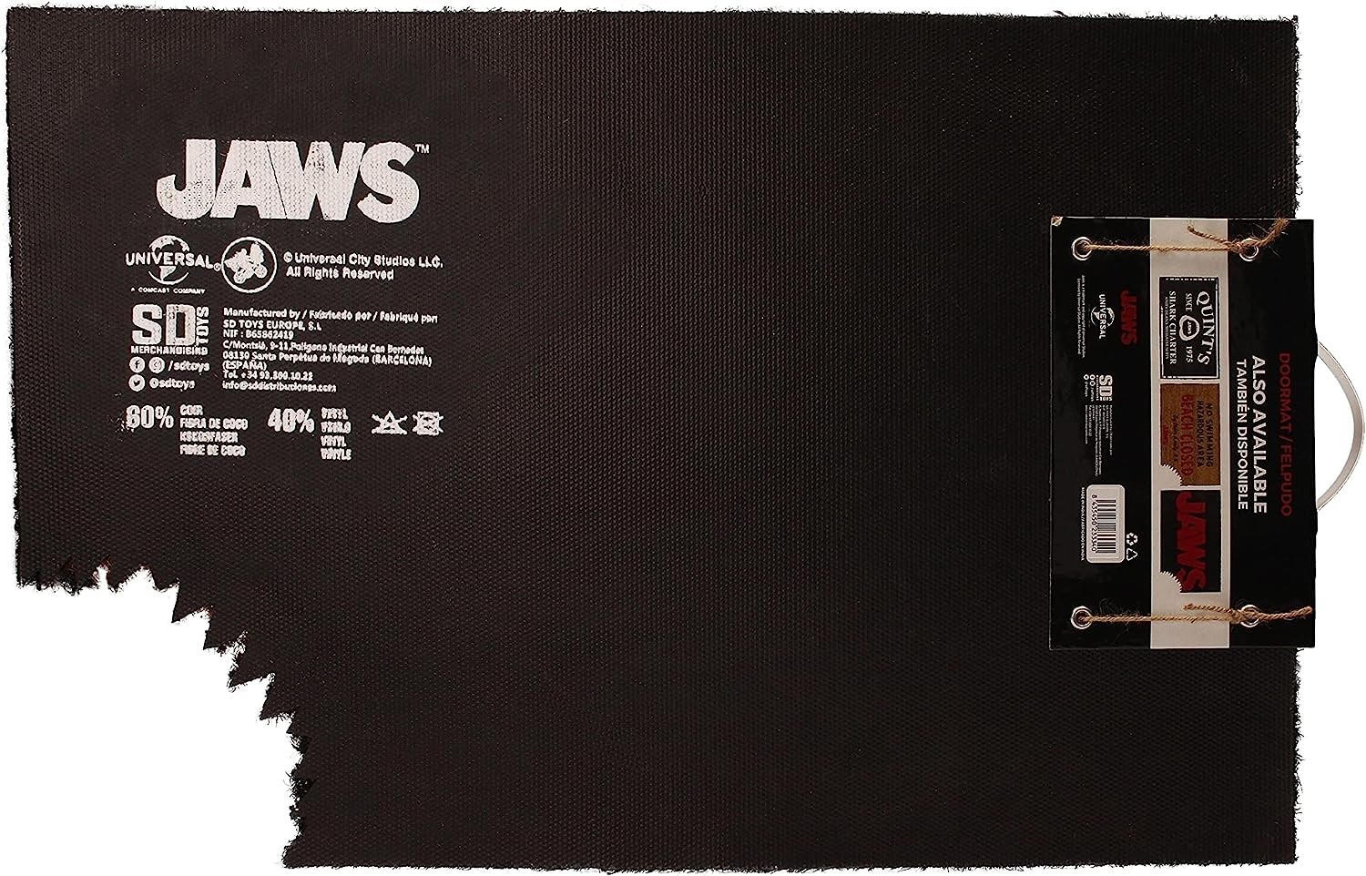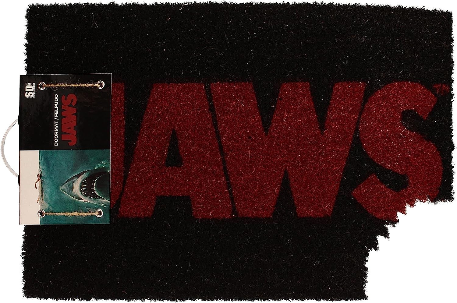 Hazte con felpudo más terrorífico que podrás encontrar basado en una de las grandes obras maestras del cine: “Tiburón”. Este felpudo de SD Toys hecho de fibra de coco y PVC antideslizante mide 60 x 40 cms y tiene el logo de JAWS en letras rojas sobre fondo negro. Pero además tiene un detalle extra que le hace ser mucho más especial: ¡un mordisco en una de sus esquinas! Parece que el mismísimo tiburón Bruce le ha dado un bocado a tu nuevo felpudo preferido. Es de licencia oficial Universal y Amblin. Ya sabes, sécate las botas cada vez que entres a tu casa después de una buena sesión de pesca extrema…