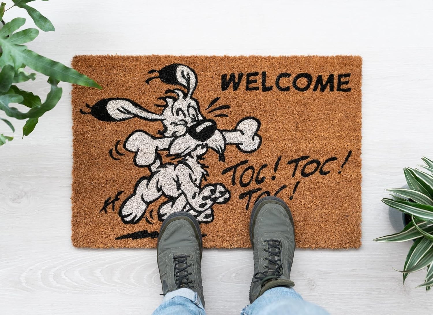 El felpudo de Ideafix, el perrito de Obélix, es un encantador accesorio para los aficionados de las aventuras de Astérix y Obélix. Fabricado con fibra de coco duradera y respaldo de PVC antideslizante, mide unos 60 x 40 cms y dará la bienvenida a tus visitantes con la imagen del simpático perrito Ideafix corriendo con un hueso en la boca. Añade un toque de humor y nostalgia galorromana a tu entrada. Es una creación de Erik de licencia oficial.