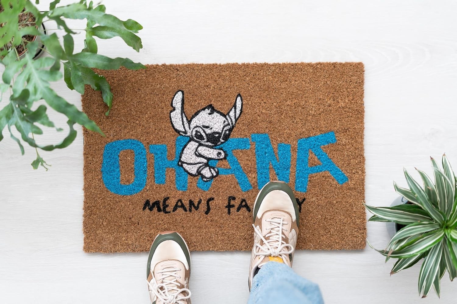 El felpudo de 60 x 40 cm de Stitch creado por Erik, combina fibra de coco y PVC antideslizante para una entrada elegante y funcional. Su diseño de Stitch jugando con la frase “Ohana means family” añade originalidad mientras atrapa la suciedad y humedad de los zapatos. Ideal para mantener limpios los espacios interiores y prevenir resbalones en días húmedos. ¡Es un simpático artículo de licencia oficial que mantendrá viva la magia de “Lilo & Stitch” en tu hogar y recibirá a tus vistas de la forma más divertida!