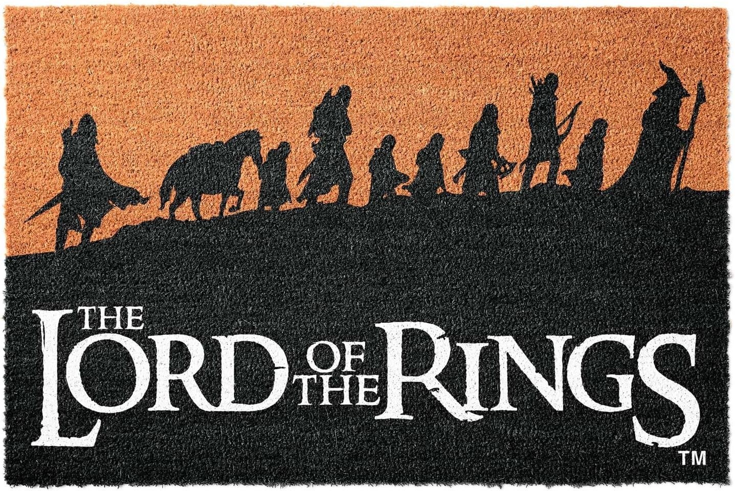 El felpudo del Señor de los Anillos mide 60 x 40 cm y está elaborado con fibra de coco y una base de PVC antideslizante. Con un diseño icónico de la primera película de la trilogía dirigida por Peter Jackson, con la silueta de la famosa Comunidad del Anillo, este felpudo transporta a los visitantes a la Tierra Media antes de entrar a tu hogar. Es una creación de licencia oficial de la marca Erik ideal para los amantes de la obra de J.R.R. Tolkien.