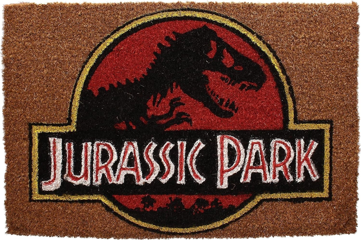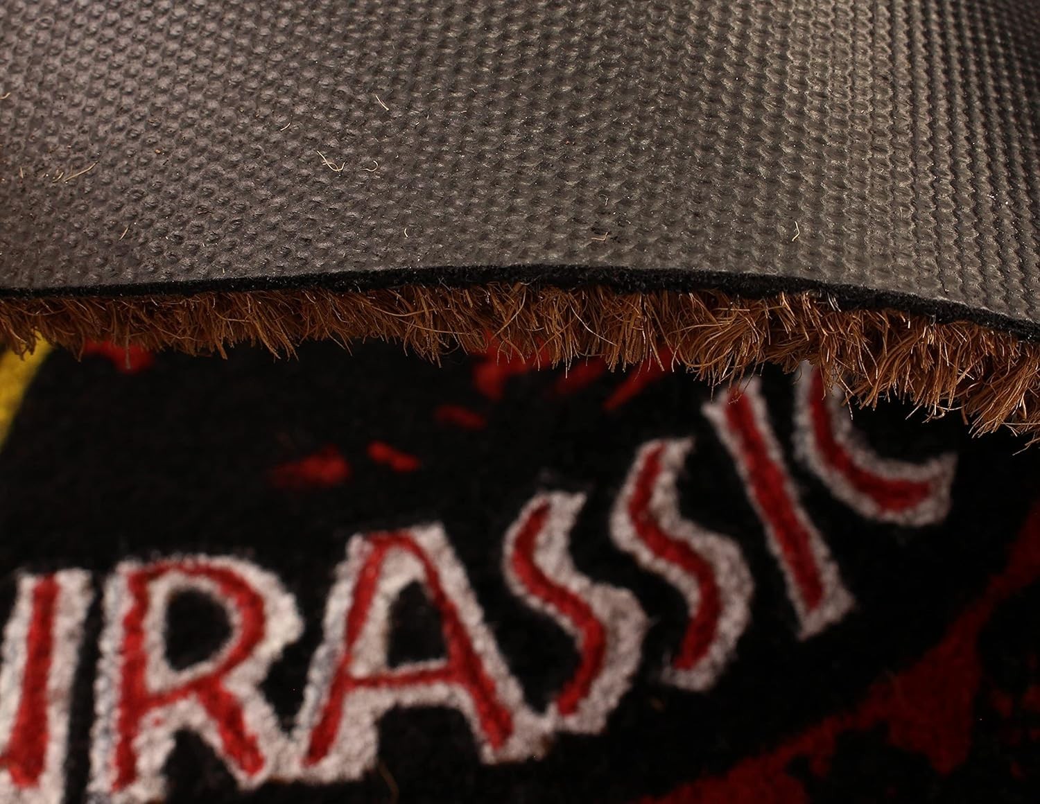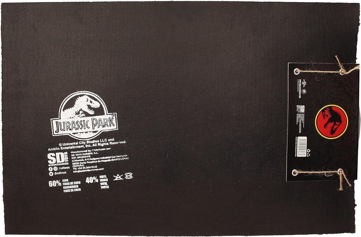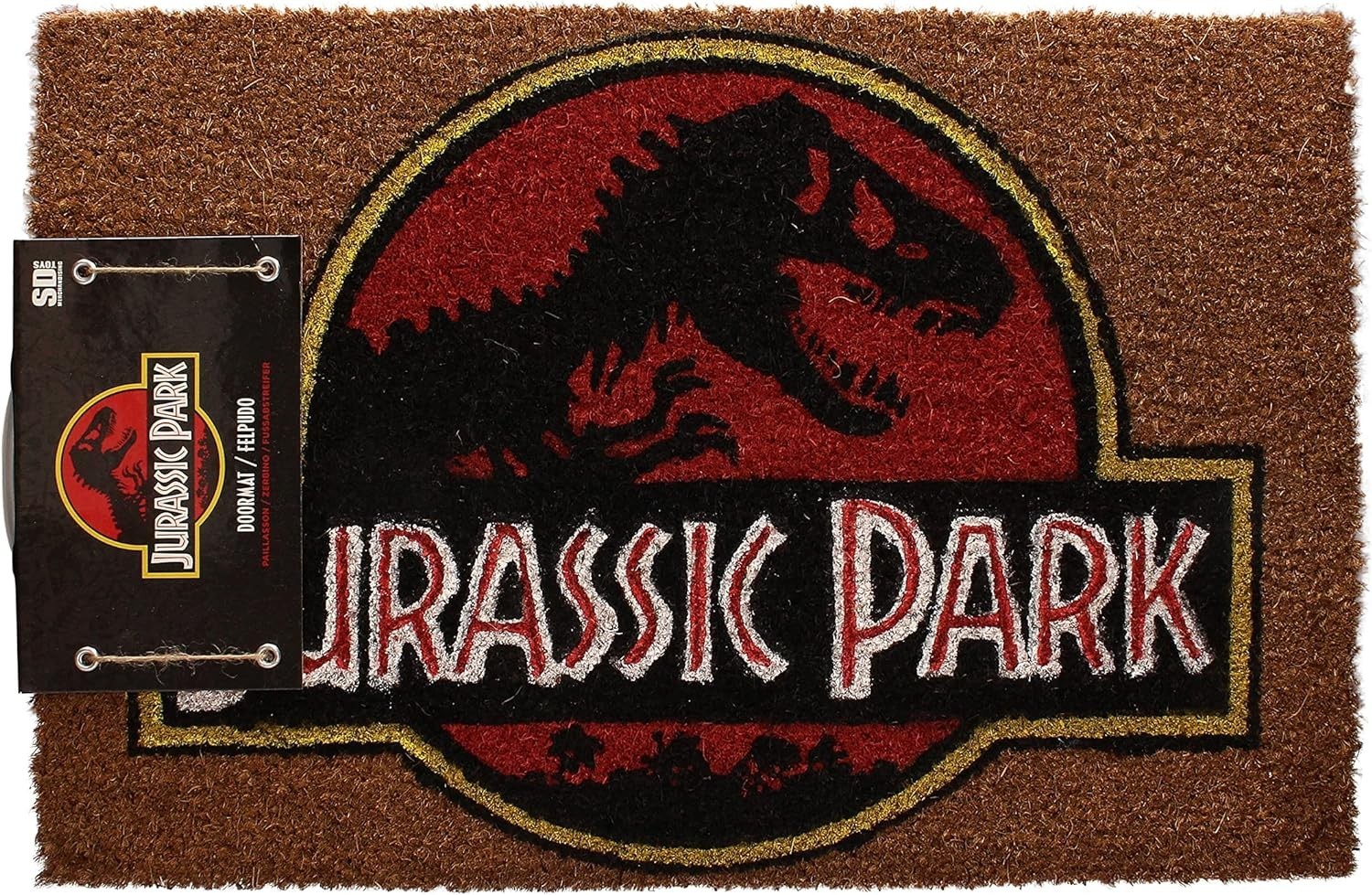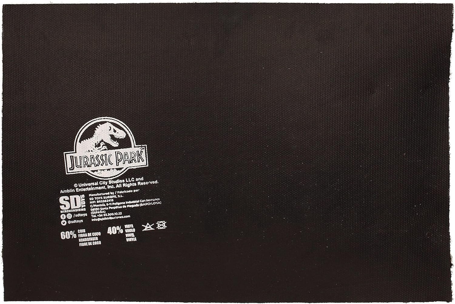 ¡Bienvenido a Jurassic Park! Los fans de la icónica película dirigida por Steven Spielberg podrán sentirse como el mismísimo John Hammond cuando den la bienvenida a sus invitados a sus dominios. El famoso logo de la saga está representado a todo color en este felpudo de 60 x 40 cms hecho de fibra de coco y PVC antideslizante. Es un artículo de licencia oficial hecho por SD Toys.