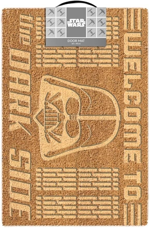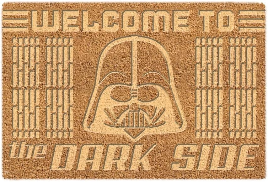 Descubre la bienvenida definitiva a tu hogar con el felpudo de Darth Vader de Pyramid International. Con un imponente "Welcome to the Dark Side" creado en bajo relieve, este felpudo hará que tus visitas sientan el poder de la Fuerza desde el primer momento. Fabricado en fibra de coco resistente y con una base de PVC antideslizante, es perfecto para limpiar los zapatos sin perder estilo ni seguridad. Sus dimensiones de 40 x 60 cms lo hacen ideal para cualquier entrada, convirtiéndolo en un accesorio esencial para los fans de Star Wars que buscan un toque épico y único.