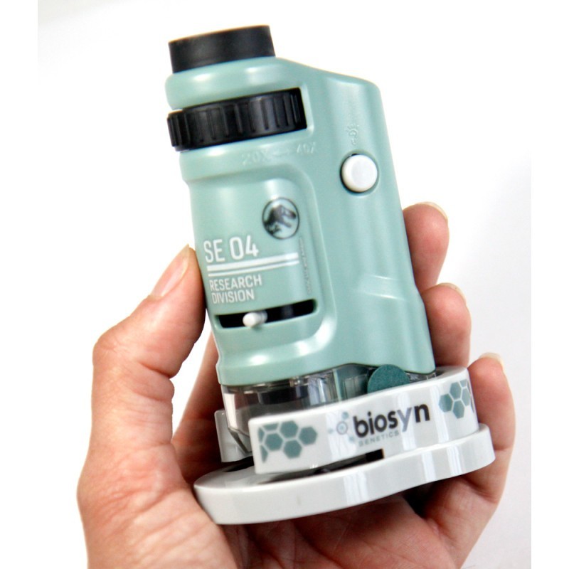 Wow Stuff crea productos a la altura del nombre de la marca, te quedarás impresionado por su originalidad. Esta vez se trata de un microscopio basado en la saga de "Jurassic World". Es un microscopio idéntico al que usan los científicos del parque de Jurassic World, ese que corrió un destino tan dramático en 2015. Junto al microscopio se incluyen láminas de los dinosaurios más emblemáticos del parque. Cuenta con aumentos de 20 a 40 x y con una luz inferior. Anota tus avances científicos en la libreta y empieza tus pinitos en el mundo de la ciencia con una original réplica de una de las sagas de aventuras más famosas de la historia del cine. Si te viera Spielberg seguro que estaría orgulloso. Funciona con tres pilas G13.