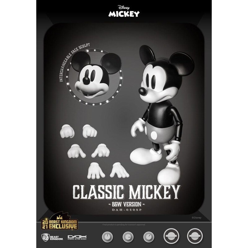 Te traemos una figura muy especial edición limitada de Mickey Mouse. Es una versión en blanco y negro del icónico personaje que cambió la historia del cine para siempre. Ha sido diseñada y creada por la marca Beast Kingdom, unos auténticos reyes a la hora de hacer figuras que transmiten alma y que tienen un acabado exquisito. Este Mickey Mouse en blanco y negro está inspirado en los primeros diseños del personaje. Incluye dos cabezas intercambiables, una más alegre y otra de estar a la expectativa. En la preciosa caja temática coleccionable vienen también tres pares de manos adicionales para que le des aún más variedad si quieres a Mickey. Mide unos 16,5 cms. Hazte con tu Mickey clásico antes de que se agoten y ten una pieza de historia del cine en tu casa.
