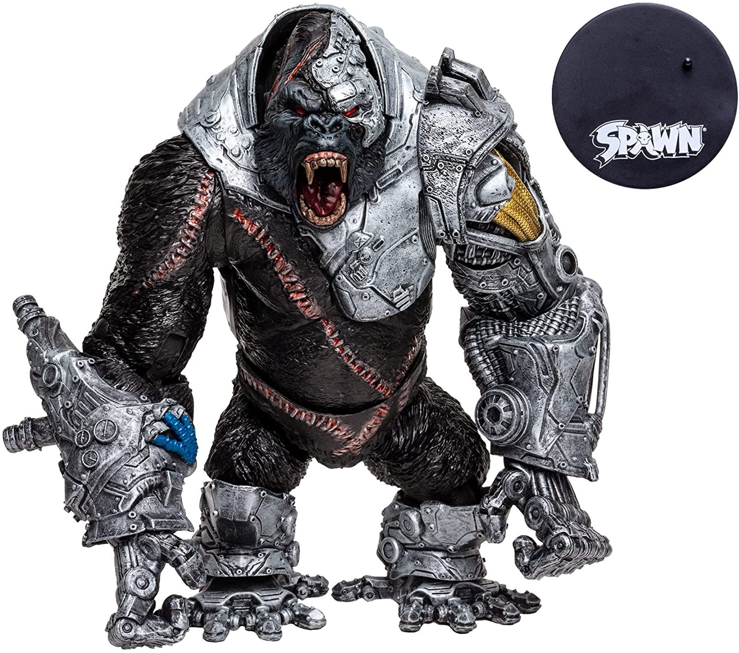 Cy-Gor es el acrónimo de Cyberborg Gorilla. Este imponente gorila del universo Spawn fue creado por el científico Frederick Willheim. El destino que sufrió Michael Konieczni, amigo de Al Simmons, fue cruel, siendo sometido al salvaje experimento por el científico, pero una vez convertido en este ser mitad animal y mitad cyborg, Cy-Gor posee habilidades como la capacidad de mejorar cibernéticamente a otras criaturas, fuerza y vista sobrehumanas, sentidos y velocidad afinados, y la capacidad de regenerarse. Esta tremenda figura de 30 cms de altura hecha de PVC tiene 22 puntos de articulación y está pintada con extremo detalle. La figura de Megafigs de McFarlane Toys incluye una peana para exposición.