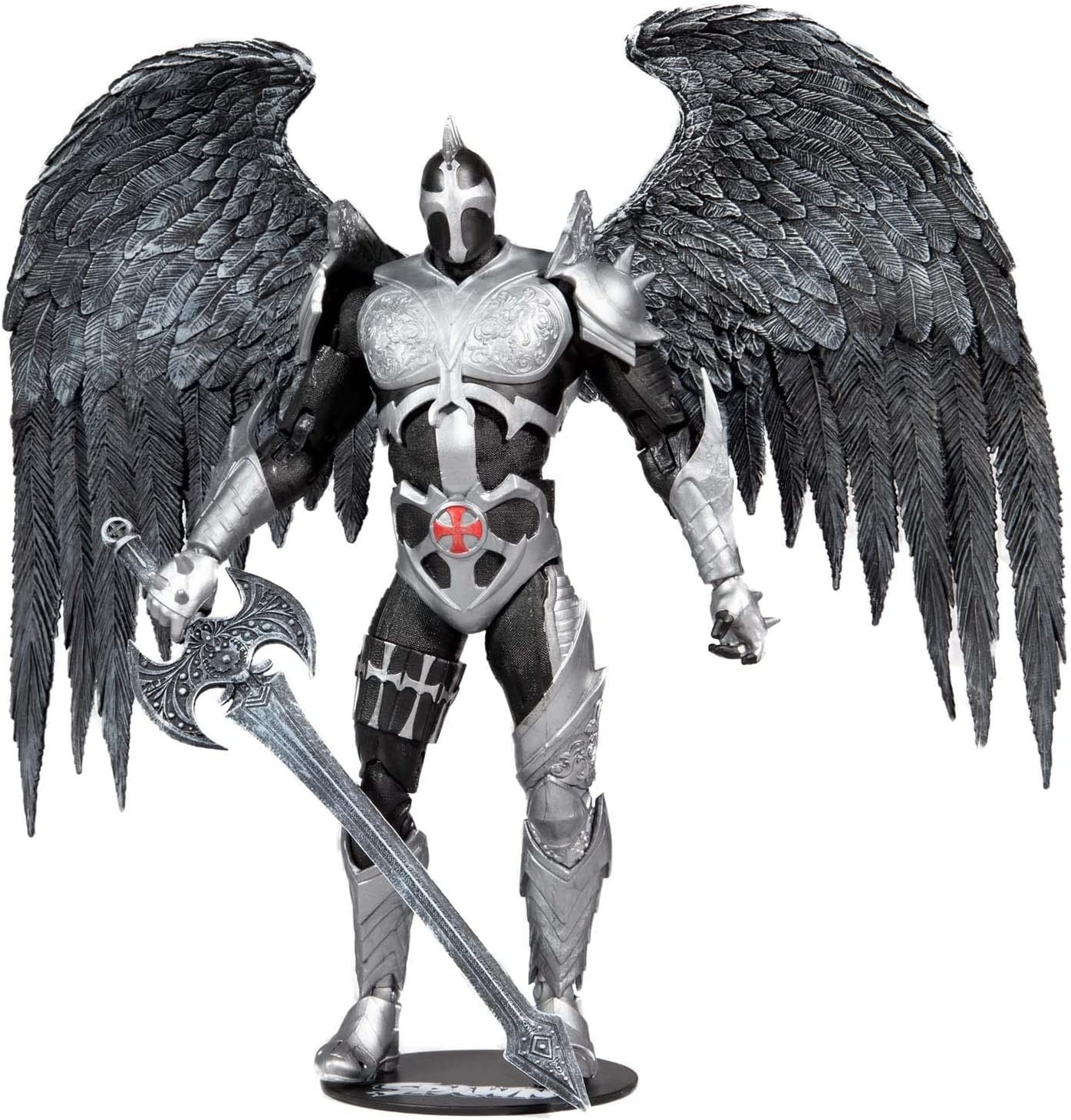 La versión oscura del Redeemer, el que sería la sucesión espiritual del Anti-Spawn, viene en forma de figura articulada de 18 cms gracias a la marca McFarlane Toys, especializada en figuras de acción como esta. La espectacular figura de PVC está pintada en tonos negros y plateados y viene en una caja temática que incluye una peana para exposición y un mandoble con guardia en forma de hacha. El trabajo de detalle tanto en las alas del Redeemer con en sus accesorios y vestuario es increíble. Colecciona las imponentes figuras salidas de la imaginación de Todd McFarlane y haz que este Redeemer ocupe un papel prominente entre ellas.
