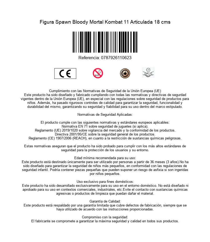 El demoníaco personaje de las viñetas Spawn dio el salto a los píxeles en el videojuego de lucha Mortal Kombat 11. Si tú también jugaste al videojuego reconocerás el diseño de este personaje, con su máscara y uniforme exquisitamente detallados, esculpidos y pintados. Mide 18 cms, está hecho de PVC y tiene salpicaduras de sangre tanto en el traje como en su hacha. Además del arma, viene como accesorio una peana para exposición con el nombre del videojuego en letras blancas. Expón a Spawn en su versión más sangrienta y dispuesta para el combate gracias a McFarlane Toys.