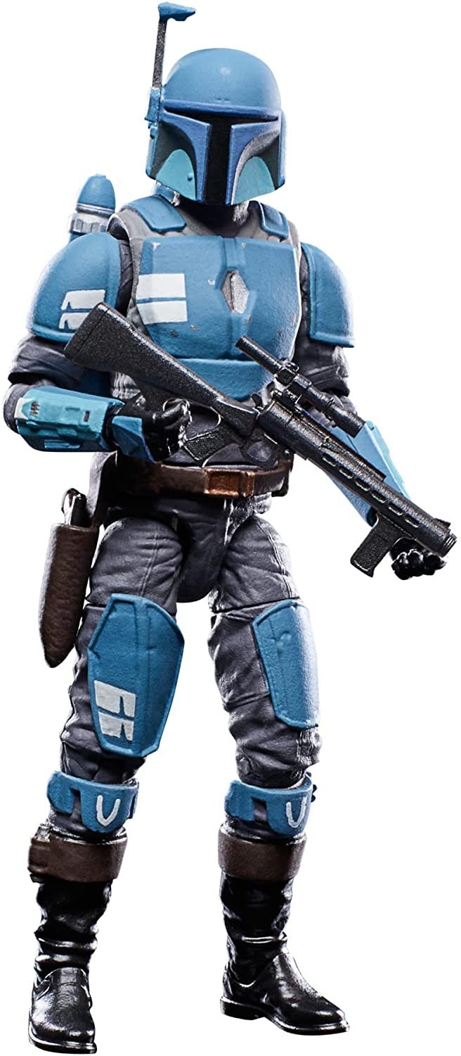 La famosa e icónica línea Vintage de Kenner y Hasbro nos trae la figura articulada de 9,5 cms de uno de los mandalorianos Death Watch que salían en la serie de Disney + "The Mandalorian". Lleva la armadura azul característica de esta fuerza de élite e incluye dos armas bláster: la pistola y el rifle. Si estás empezando tu colección de personajes de la serie más importante de Disney +, este personaje no puede faltar.