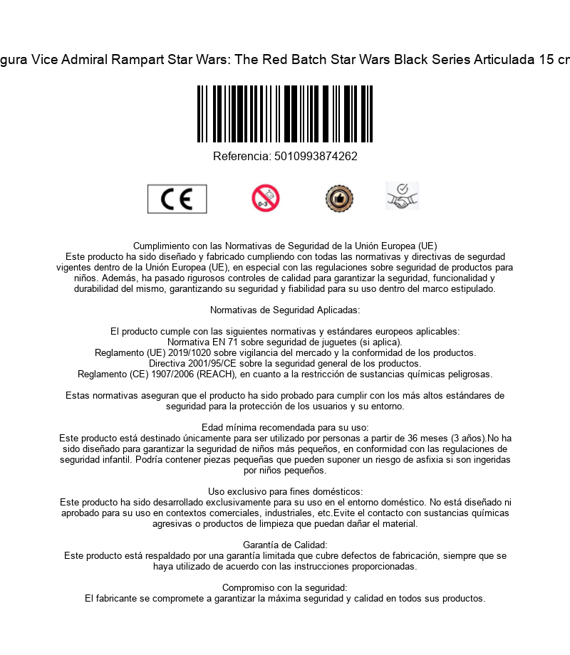 El Imperio Galáctico tiene muchos servidores que fueron capitales en sus primeros años. El Vicealmirante Rampart es uno de ellos. Emocionado por poder darle forma al nuevo Imperio, Rampart es uno de los personajes que nos trajo "The Bad Batch (La Remesa Mala)". La figura articulada del imperial mide 15 cms y viene de la mano de Hasbro y su línea Black Series. Su elegante caja negra tiene una ilustración del personaje, que viene acompañado de un bláster láser y un robot de mantenimiento de un crucero imperial. Está hecho de PVC de gran calidad aprobado por el mismísimo Imperio Galáctico.