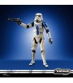 El videojuego de Lucasfilm Games y Aspyr Media nos dio unos rediseños fantásticos de varios personajes ya conocidos, entre ellos tenemos a este Stromtrooper Commander. El colorido comandante de los soldados de asalto tiene su clásica armadura blanca con unos elegantes a la par que tribales añadidos de color azul. Tiene un aspecto que le ayuda a mezclarse mejor con los paisajes exóticos de los lugares en los que lleva a cabo sus misiones. La figura articulada de 9,5 cms de este soldado viene con dos rifles láser distintos. Está hecho de PVC de gran calidad y pertenece a la Vintage Collection de Hasbro y Kenner.